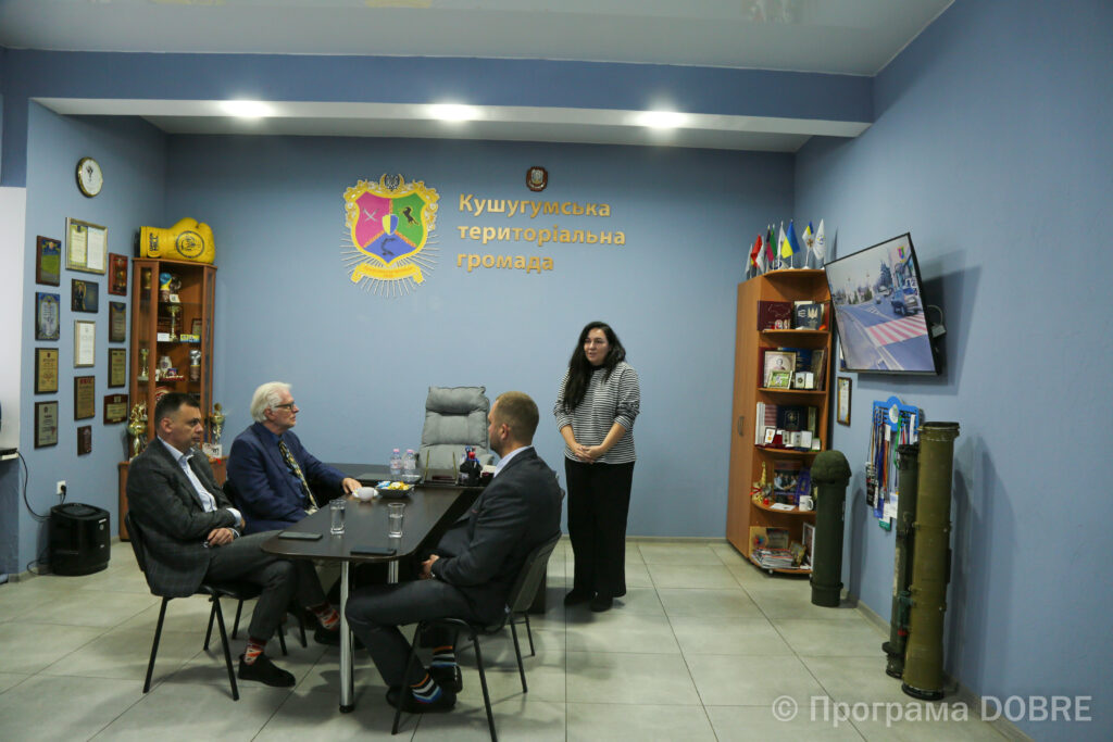 На початку листопада Програма USAID DOBRE підписала меморандум про співпрацю та взаємодію із Запорізькою обласною військовою адміністрацією. Меморандум передбачає підтримку 10 громад Запоріжжя. На жаль, деякі з них ще перебувають в окупації, інші – у зоні активних бойових дій та потерпають від постійних обстрілів. Програма USAID DOBRE постійно вивчає їхні потреби. Лише в 2023 році запорізькі громади отримають допомогу на реалізацію своїх проєктів понад один мільйон доларів. Серед 10 громад-партнерів – прифронтова Кушугумська. Другого листопада тут побували керівник Програми USAID DOBRE Браян Кемпл, заступник керівника Програми Максим Бурдавіцин, старший регіональний менеджер Програми Андрій Нагорний, фахівчиня з управління проєктами та програмами в сфері розвитку громад Програми Вікторія Зубкова та фахівець із розвитку громад Програми Денис Абрамов.