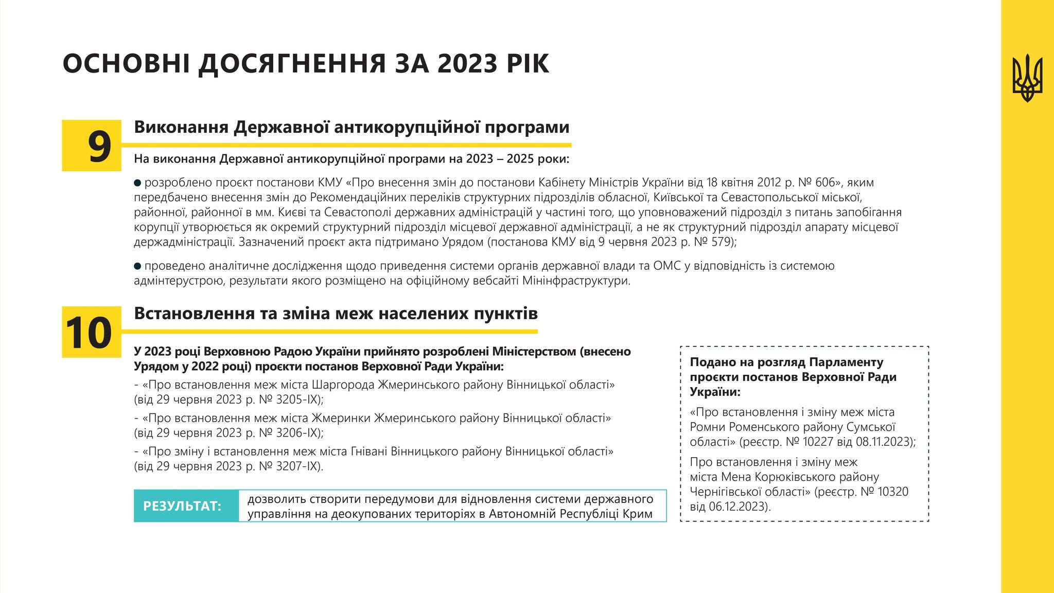 Основні результати роботи Міністерства у сфері децентралізації за 2023 рік: