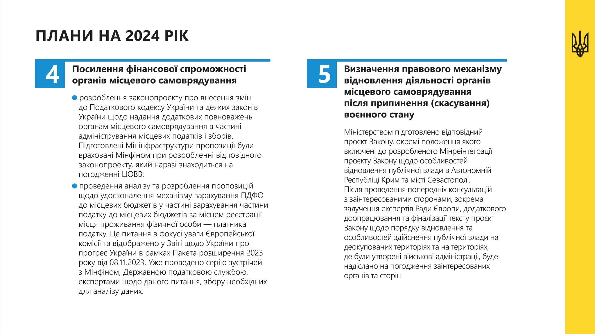 Плани Міністерства в сфері регіональної політики на 2024 рік: