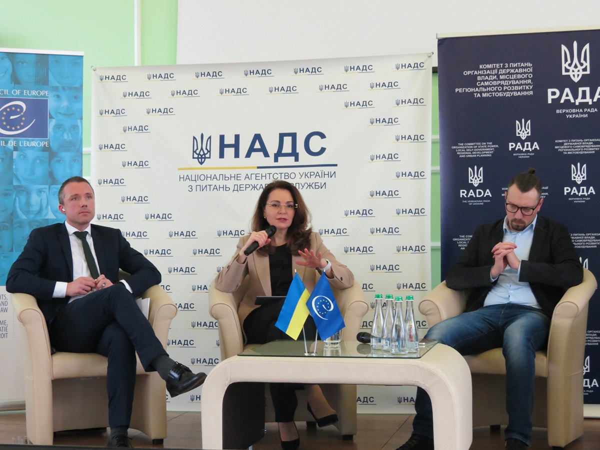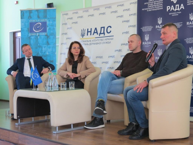 «Рада Європи через її Центр експертизи доброго врядування та його програми в Україні у тісній співпраці з НАДС на постійній основі супроводжує процес розробки оновлених правових засад служби в органах місцевого самоврядування, починаючи від розробки проекту нового Закону про службу в органах місцевого самоврядування та продовжуючи розробкою проектів актів, необхідних для його впровадження, а також наданням методичної підтримки органам місцевого самоврядування та їх посадовим особам. Ця робота спрямована на реалізацію принципів Європейської хартії місцевого самоврядування та рекомендацій Ради Європи у сфері законодавства про службу в органах місцевого самоврядування», – інформувала консультантка Програми Леся Федченко.