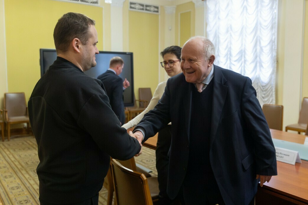 Заступник керівника Офісу Президента України Олексій Кулеба провів зустріч зі спеціальним посланником уряду ФРН з питань реформ у галузях урядування та децентралізації в Україні професором Георгом Мільбрадтом.