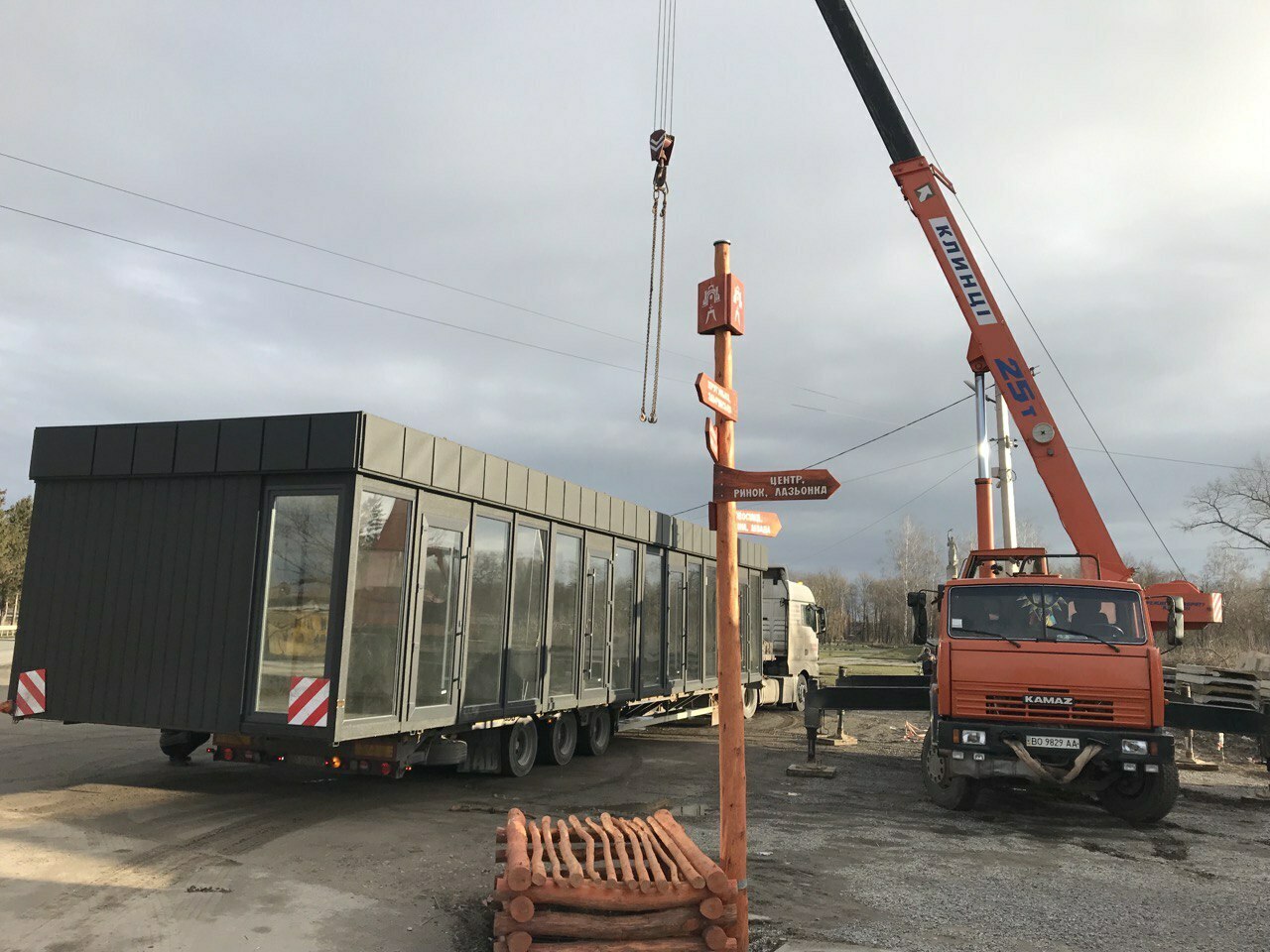 Нещодавно у Вишнівець привезли павільйони для бізнес-простору