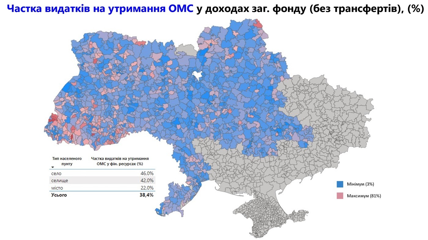 З іншого боку, саме на плечі громад лягає фінансування значної частини повноважень, як делегованих так і власних (які досі не розмежовані в Бюджетному кодексі). Але на них і спирається міцність місцевих бюджетів, адже за обсягом саме бюджети місцевого самоврядування складають основу стійкості місцевих фінансових ресурсів.