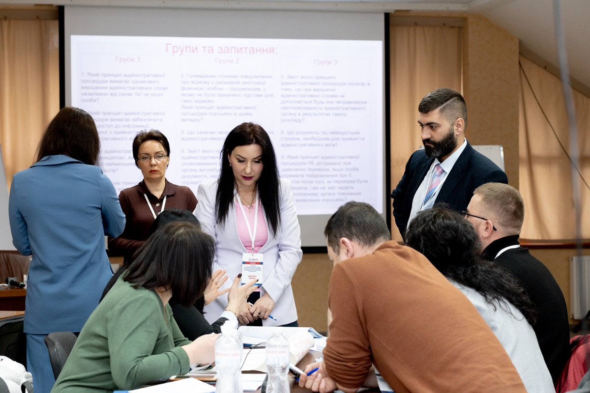 Напередодні тренінгу експерти Проєкту USAID «ГОВЕРЛА» провели опитування та визначили найбільш актуальні теми, які хвилюють громади: як на практиці працює закон у різних адміністративних органах і для різних посадовців; що потрібно робити під час адміністративного провадження та оскарження тощо. Під час події ці питання розібрали на життєвих прикладах і з моделюванням конкретних ситуацій. Також презентували модельний акт «Положення про комісію з розгляду скарг» та обговорили труднощі у роботі з ним.