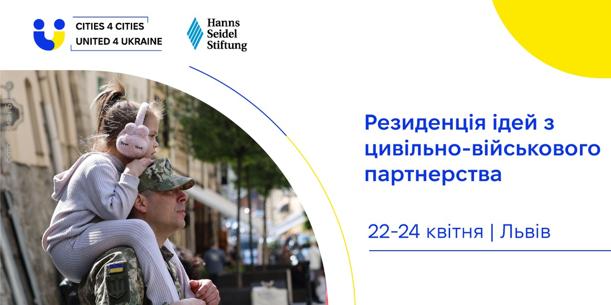 Cities4Cities | United4Ukraine запрошує представників українських громад – мерів або їх профільних заступників, керівників підрозділів, відповідальних за турботу про ветеранів, військових та їх родин на резиденцію ідей з цивільно-військового партнерства. Вона триватиме три дні, з 22 по 24 квітня у Львові.
