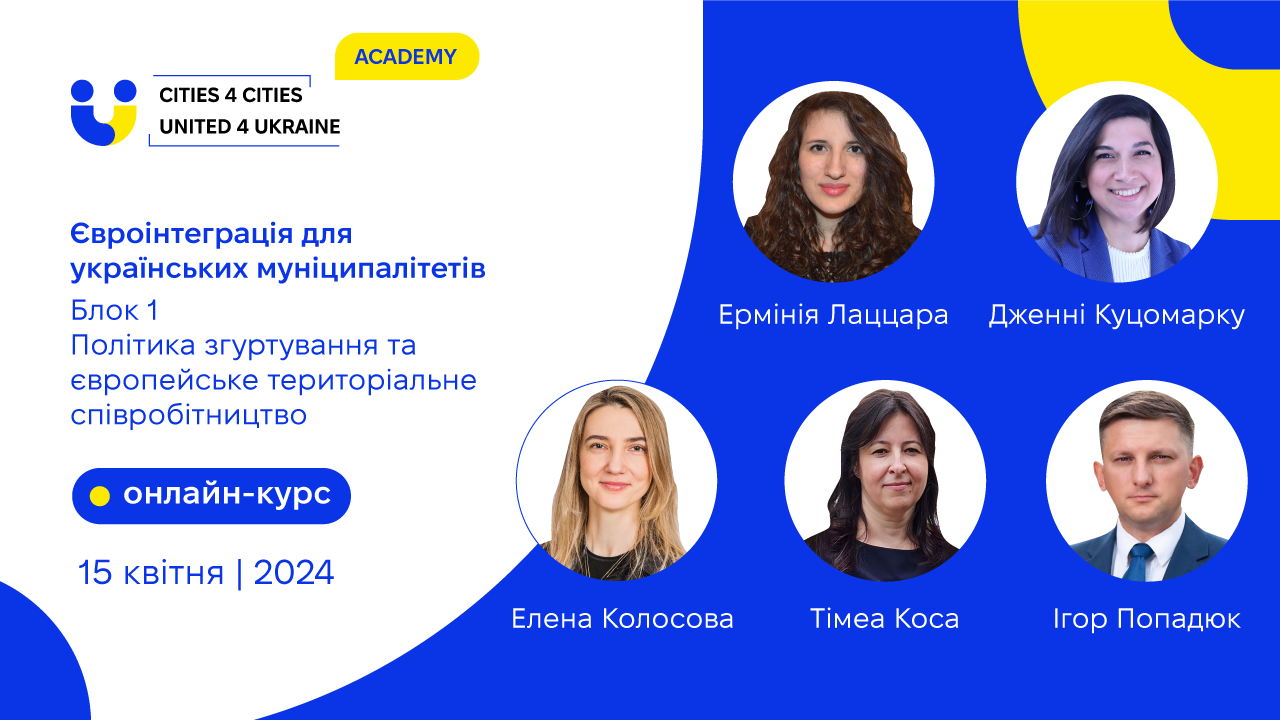 15 квітня ініціатива Cities4Cities | United4Ukraine на платформі ACADEMY Cities4Cities запустила онлайн-курс «Євроінтеграція для українських муніципалітетів». Навчання покликане навчити українські громади активніше брати участь у програмах ЄС та розвивати співпрацю на європейському рівні. Курс проходить близько 500 представників громад. Він триває за підтримки Salar International та Львівської міської ради.