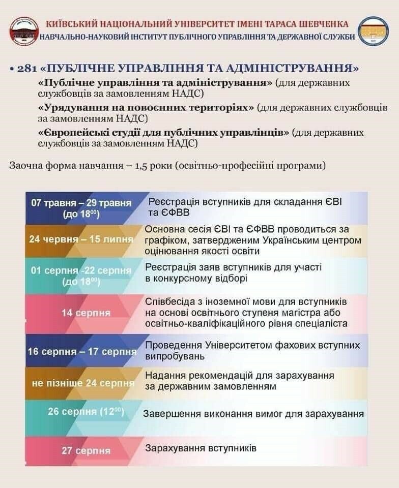 Важливо нагадати, що фінансування здобуття ступеня магістра галузі знань «Публічне управління та адміністрування» може здійснюватися за рахунок коштів державного та місцевих бюджетів.