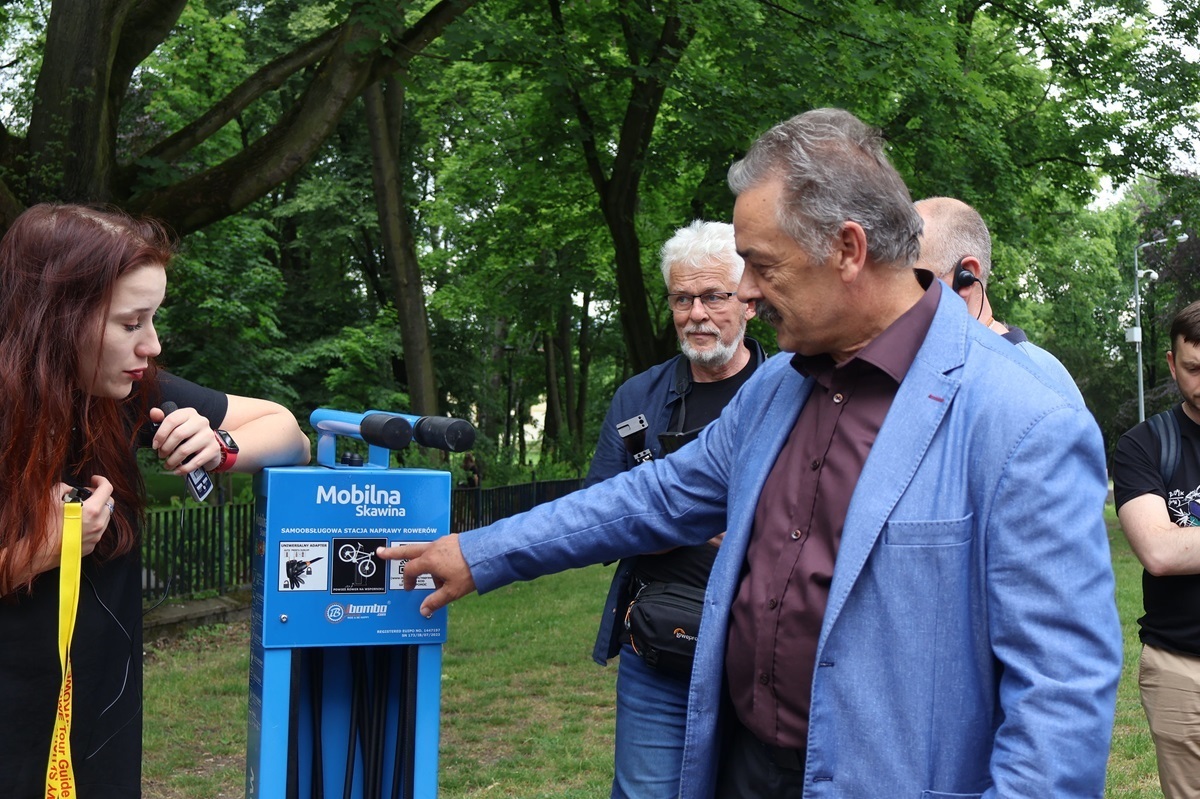 Вісім станцій ремонту велосипедів, встановлених за різними маршрутами, порівняно недорого коштували владі міста-ґміни, – орієнтовно по 5 тисяч злотих кожна. Зчитавши на такій станції QR-код, велосипедист отримує доступ до інструкції, яким чином і за допомогою якого з наявних тут інструментів ліквідувати поломку. Ця послуга абсолютно безкоштовна і стала ще однією перевагою користування велотранспортом у Скавіні.