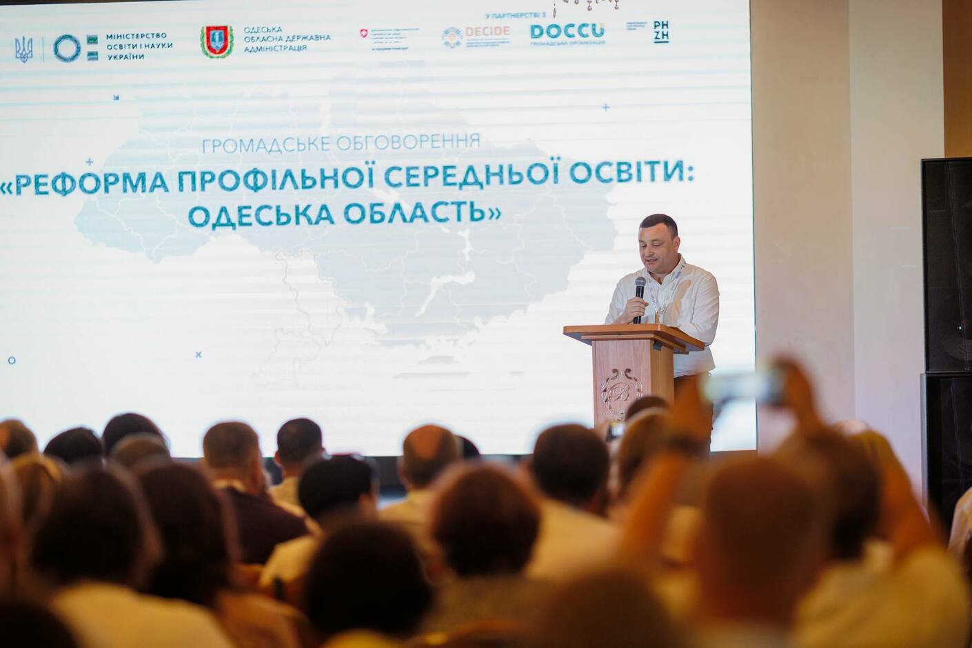 У регіонах тривають громадські обговорення реформи профільної середньої освіти. 27 червня приблизно 150 освітян та управлінців зібралися для обговорення особливостей упровадження реформи в Одеській області. Захід організувало Міністерство освіти і науки України в партнерстві зі Швейцарсько-українським проєктом DECIDE — «Децентралізація для розвитку демократичної освіти» та за сприяння Одеської ОВА.