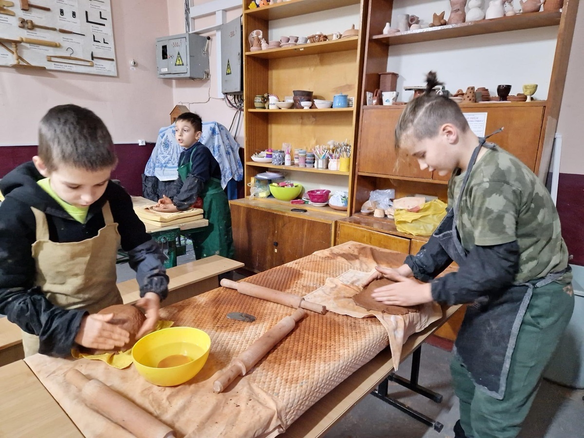 - Ще у 2019 році ми написали проєкт неформального освітнього хабу, частиною якого була гончарна майстерня, – розповідає завідувачка філії Пирятинського ліцею і керівниця гончарного коворкінгу Лідія Стефанова. – Тоді ж ми взяли участь у популярному гумористичному шоу «Розсміши коміка»: гумористи з Полтавщини смішили коміків, а ми – отримували кошти. Саме таким був формат того шоу. Коштів було багато – 480 тис. грн, і на них ми придбали перше обладнання для нашої гончарної майстерні: гончарні кола, піч для обпалювання виробів з глини і все таке інше. А коли наша громада отримала грант за підтримки ГО «Інститут Громадянського Суспільства» у партнерстві з Пирятинською міською радою за підтримки Європейського Союзу в межах проєкту «Розбудова ланцюжків доданої вартості у молочному та ягідному кластерах Пирятинської громади для розширення економічних можливостей молоді і сільських жителів та еко-орієнтованого зростання», ми купили ще одну, потужнішу піч, перетворивши майстерню на невеличку фабрику. Це дало можливість проводити за гончарним колом не тільки гурткові заняття, але регулярні шкільні уроки з образотворчого мистецтва та трудового навчання. Час від часу у нашому коворкінгу також проводили уроки вчителі фізики, літератури, історії тощо.