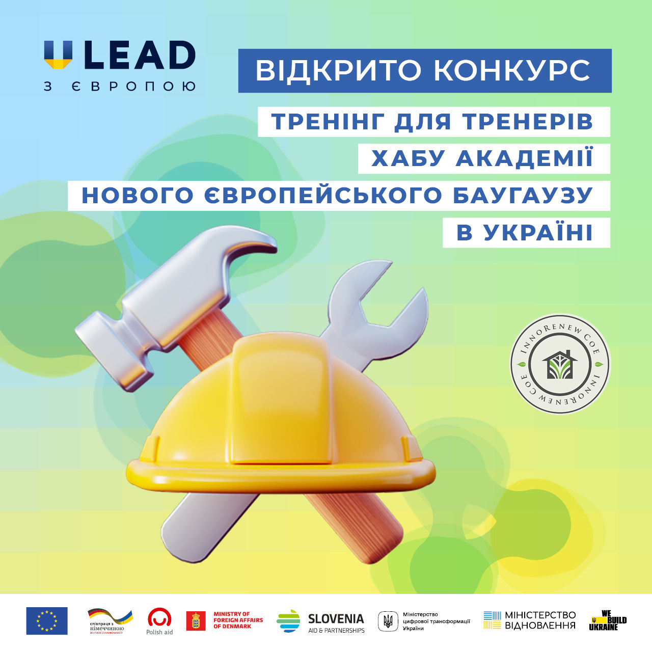 У рамках ініціативи «Відбудова кращої України через Академію Нового Європейського Баугаузу (НЄБ)», що реалізується InnoRenew CoE за підтримки Програми "U-LEAD з Європою", відкрито конкурс на участь в 3-денному тренінгу в м. Ізола, Словенія.