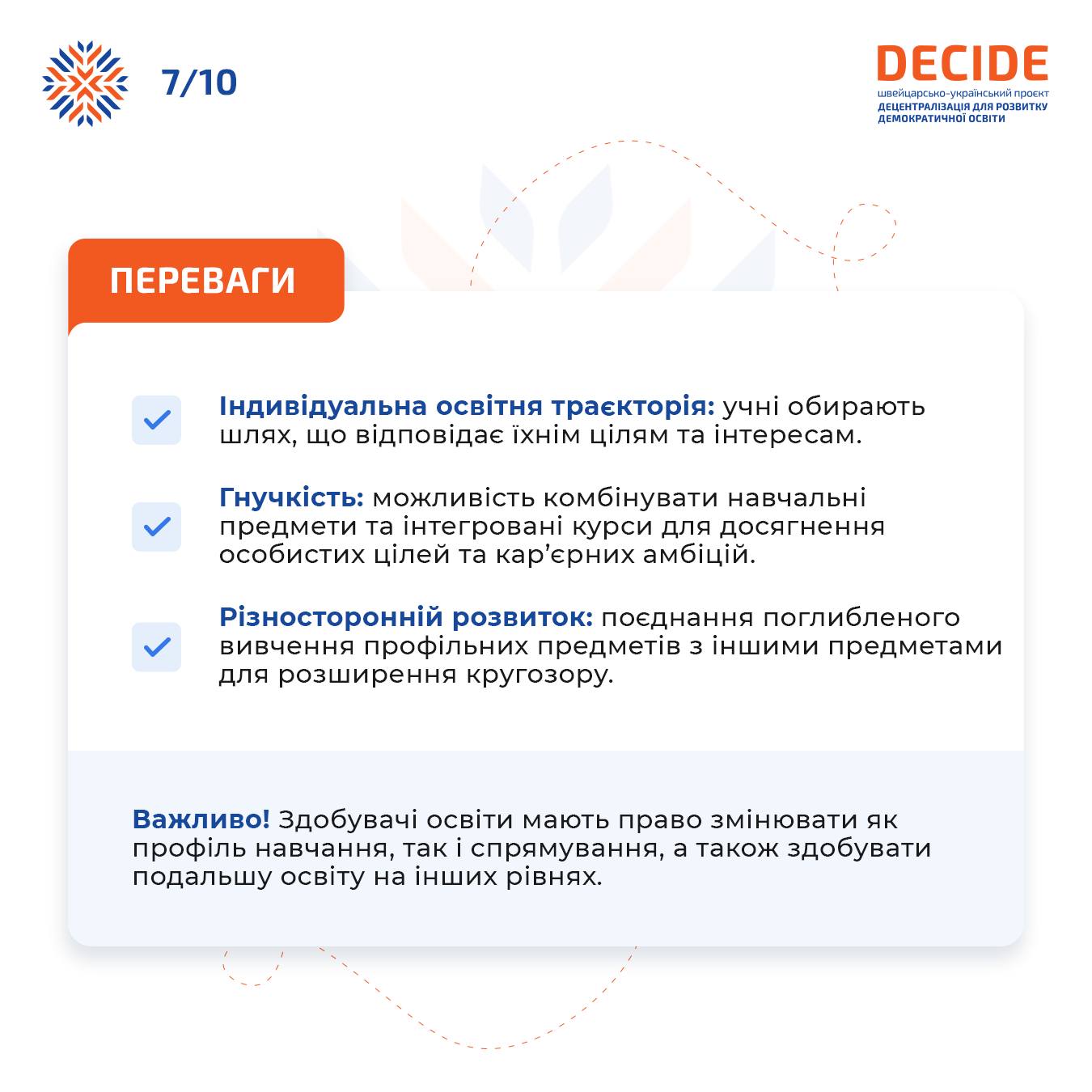 Ця нова модель середньої освіти робить її більш орієнтованою на учнів та їхні потреби, допомагаючи їм краще зрозуміти свої сильні сторони та визначитися з вибором майбутньої професії.