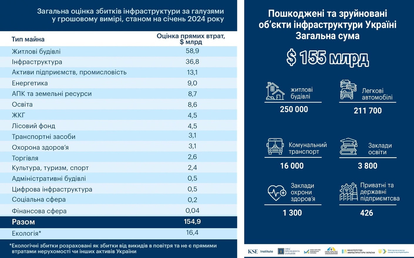 Прямі збитки від руйнувань цих обʼєктів оцінюються у $58,9 млрд. У порівнянні зі звітом на кінець 2023-го ця сума збільшилася на $4,8 млрд, та й надалі продовжує невпинно зростати.