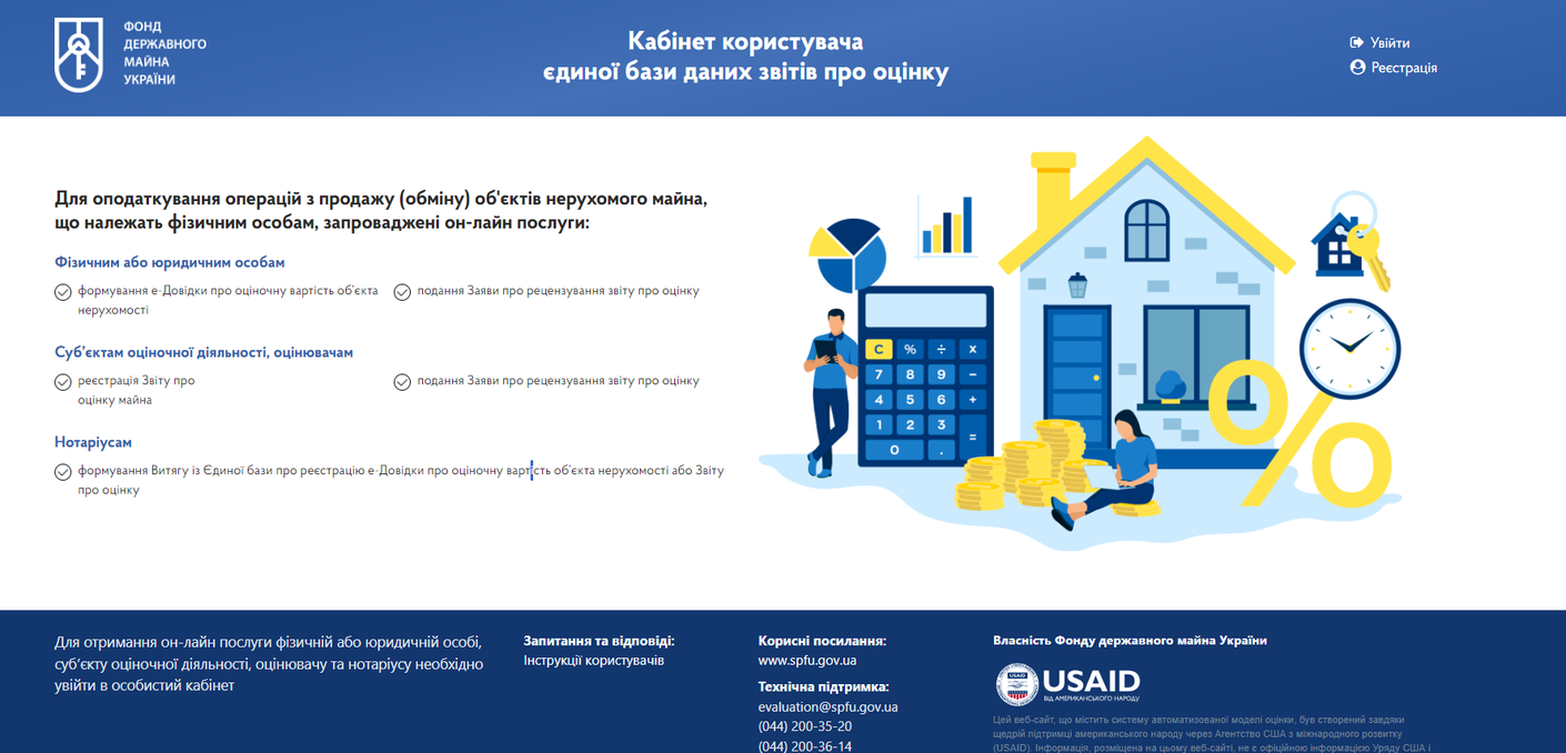 Рисунок 3. Кабінет користувача Єдиної бази даних звітів про оцінку