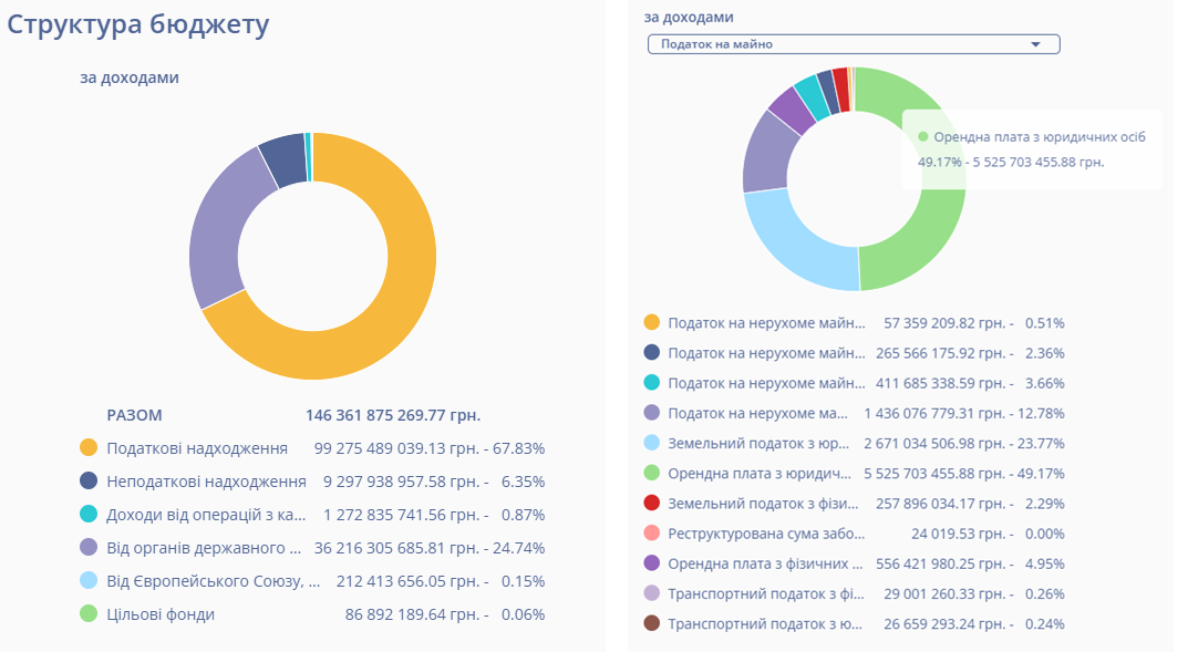 Основою економічної стабільності та можливостей планування бюджетних надходжень для значної кількості громад є доходи від плати за землю. За даними openbudget.gov.ua, станом на березень 2024 року даний вид податкових надходжень становить до 68% загального обсягу надходжень до місцевих бюджетів територіальних громад. При цьому податок на майно складає 23% загального обсягу податкових надходжень (рис.1). Таким чином, земельний податок орендна плата за землю для фізичних та юридичних осіб становлять 75% від загального об’єму місцевих податків і зборів і, хоча вклад у загальну структуру доходів місцевих бюджетів не є вирішальним, проте земля є і залишається одним з найбільш стабільних джерел надходження коштів до місцевих бюджетів та за 2023 рік принесло громадам сукупно понад 30 млрд гривень.