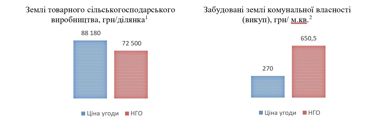 Експертна грошова оцінка земельних ділянок та прав на них проводиться для визначення вартості об'єкта оцінки. Дана оцінка використовується при укладанні цивільно-правових угод щодо земельних ділянок та прав на них, за винятком деяких випадків. Однак, ціни продажу земельних ділянок значно відрізняються від їх нормативної грошової оцінки (Рисунок 3).