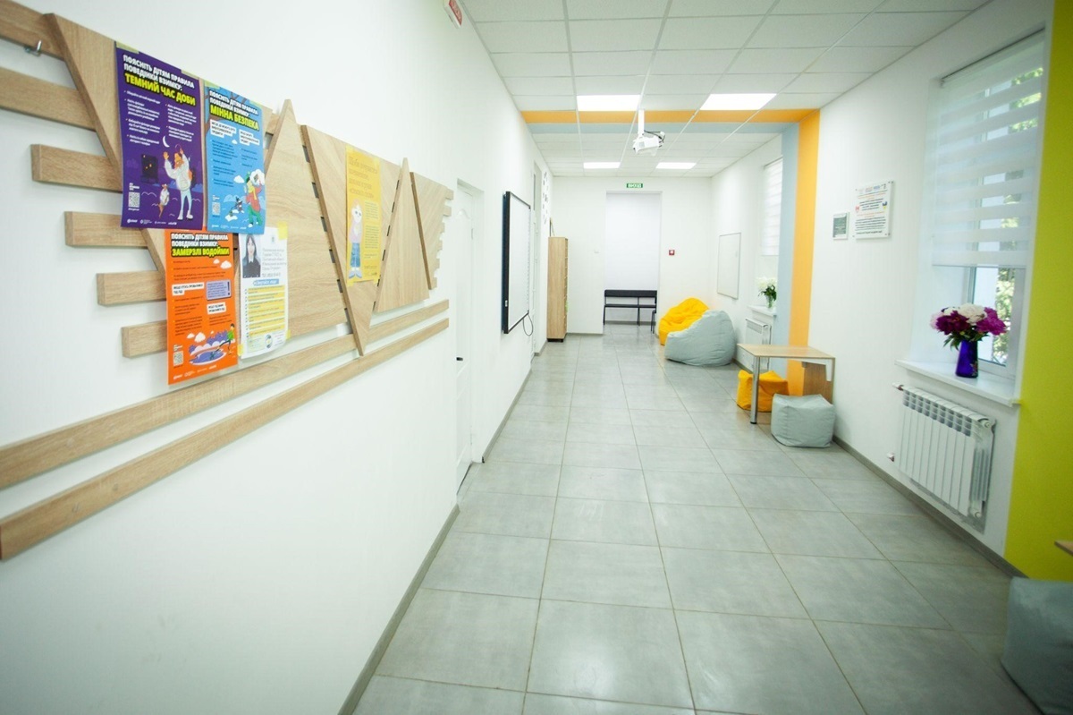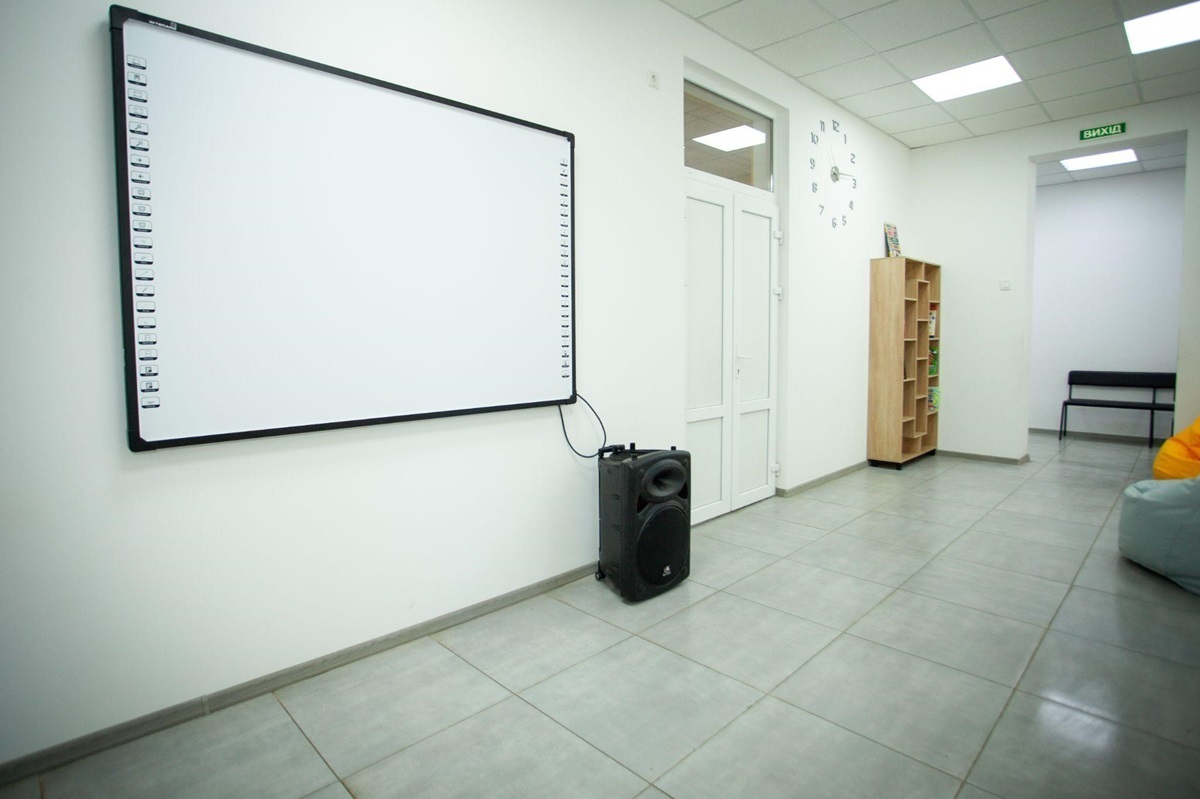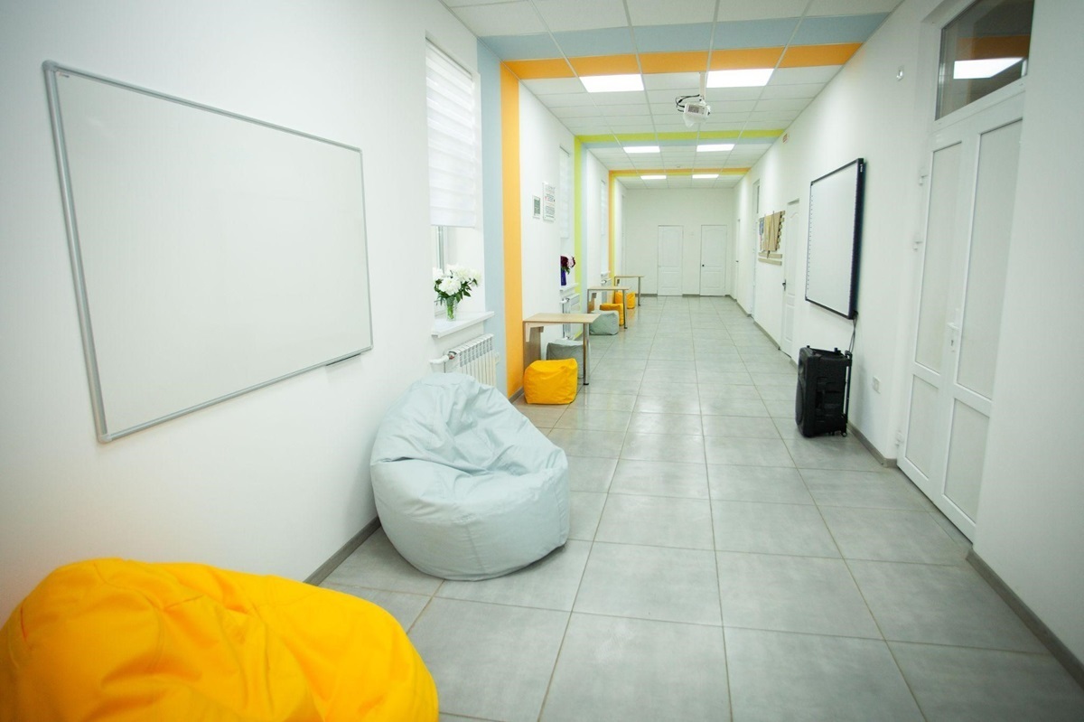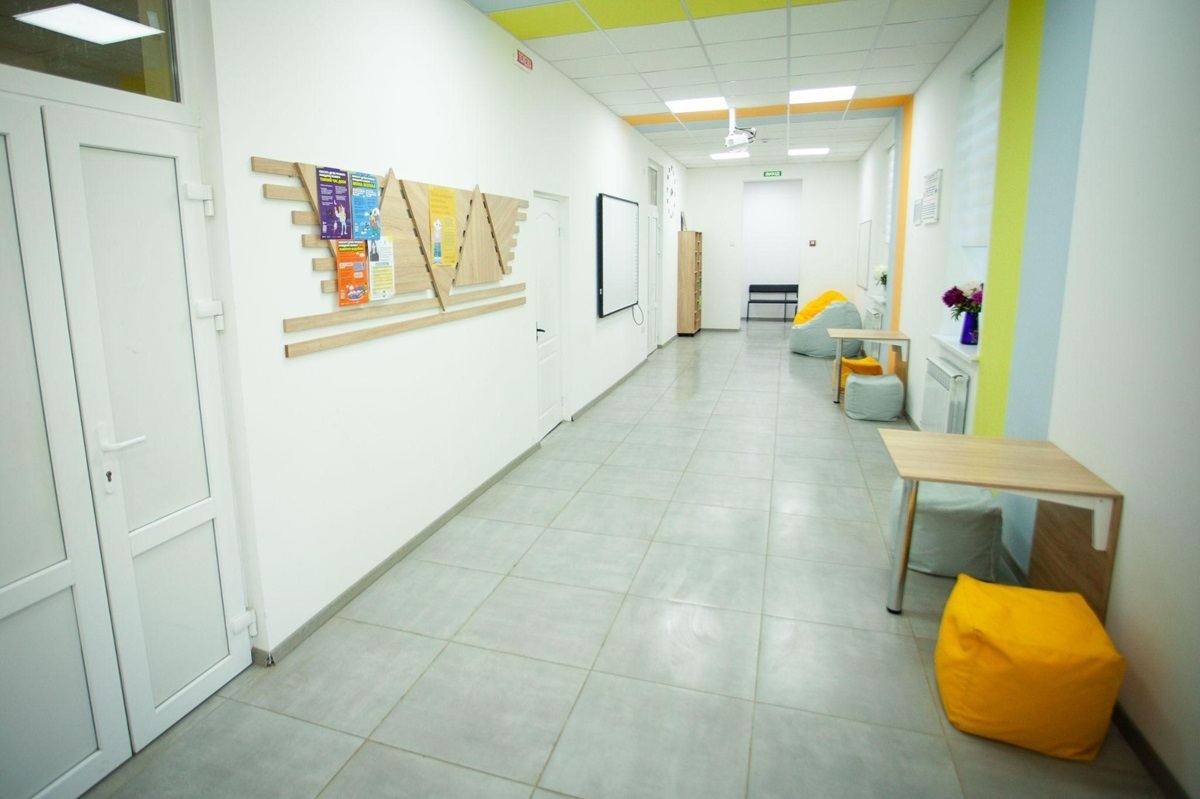 Загалом вдалося замінити стелю та освітлення коридору, поставити нові вікна та оновити шпалери, замінити підлогу, щоб мати можливість робити наліпки, написи, розміщувати ігри; купити м’які пуфики, столи-трансформери, магнітну дошку для проведення тренінгів, для перегляду фільмів; поставити стелажі для зберігання настільних ігор, книжок та поробок учнів.