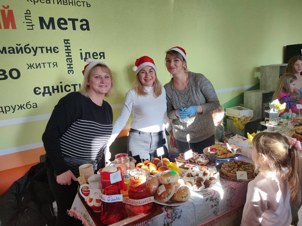 Директорка ліцею розповідає, що у фоє також функціонує міні проєкт “буккросинг”. Можна взяти почитати будь-яку книжку й залишити іншу натомість. До того ж тут проводять благодійні ярмарки. Загалом на двох таких зібрали майже 50 тисяч гривень на підтримку ЗСУ.