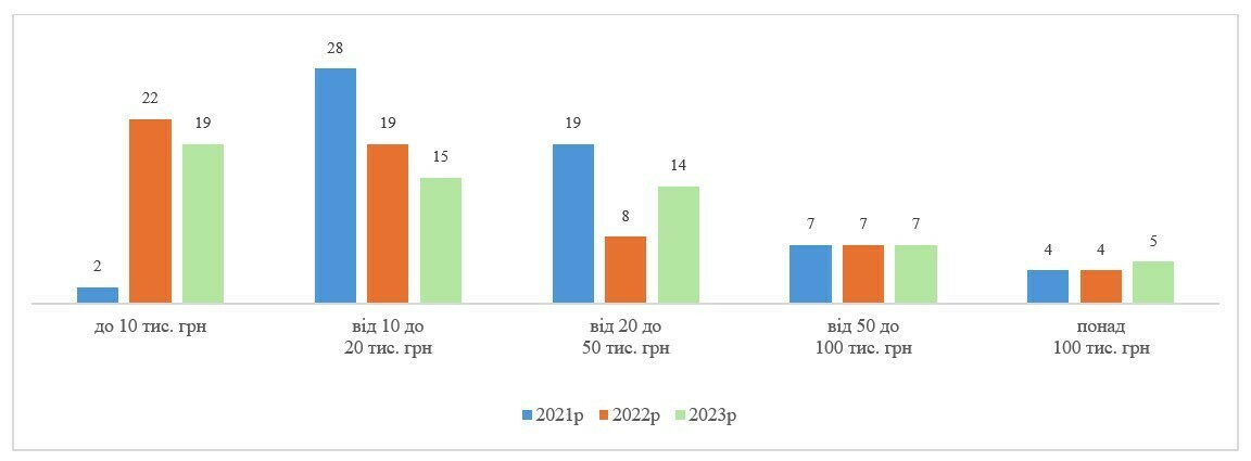 Так, плати за землю до бюджетів 60-ти територіальних громад у 2023 році надійшло 564,7 млн грн, що на 1,5% більше від надходжень 2022 року, проте менше обсягу довоєнного 2021 року майже на 28%. При цьому, у розрізі бюджетів територіальних громад у 2023 році в порівнянні із 2021 роком спостерігається значне коливання надходжень, від зростання у 2,2 рази до зменшення на 99%.