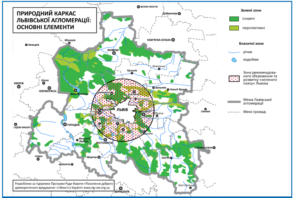 Основні елементи природного каркасу Львівської агломерації і можливий «зелений пояс» Львова