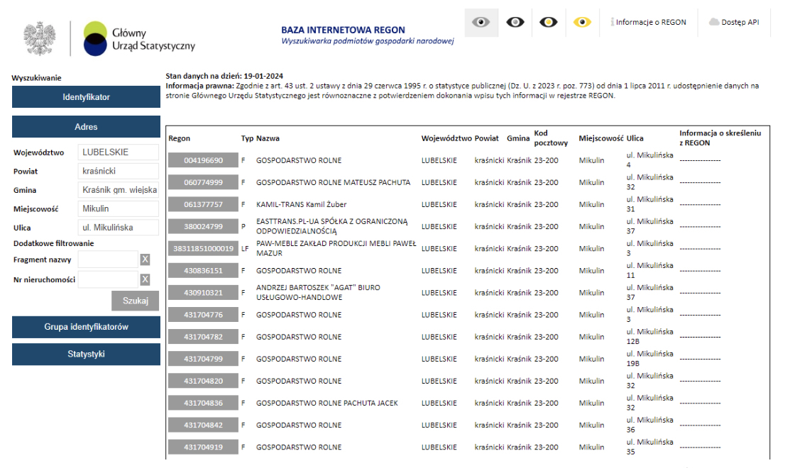 Рис. 1.3. Вигляд результату вибірки з відкритих даних реєстру REGON[9]