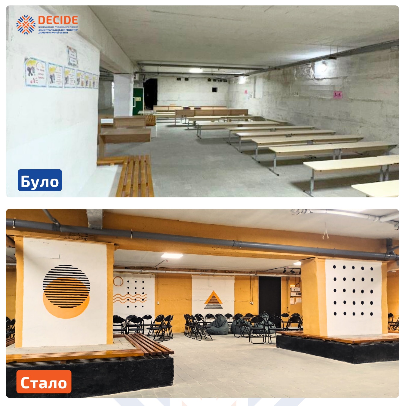 Завдяки підтримці Швейцарсько-українського проєкту DECIDE підвальне приміщення Носівського ліцею №5 не лише перетворилось на укриття, а й стало сучасним освітнім хабом.