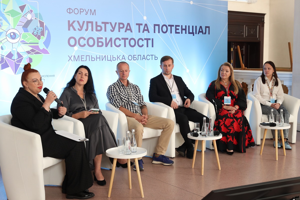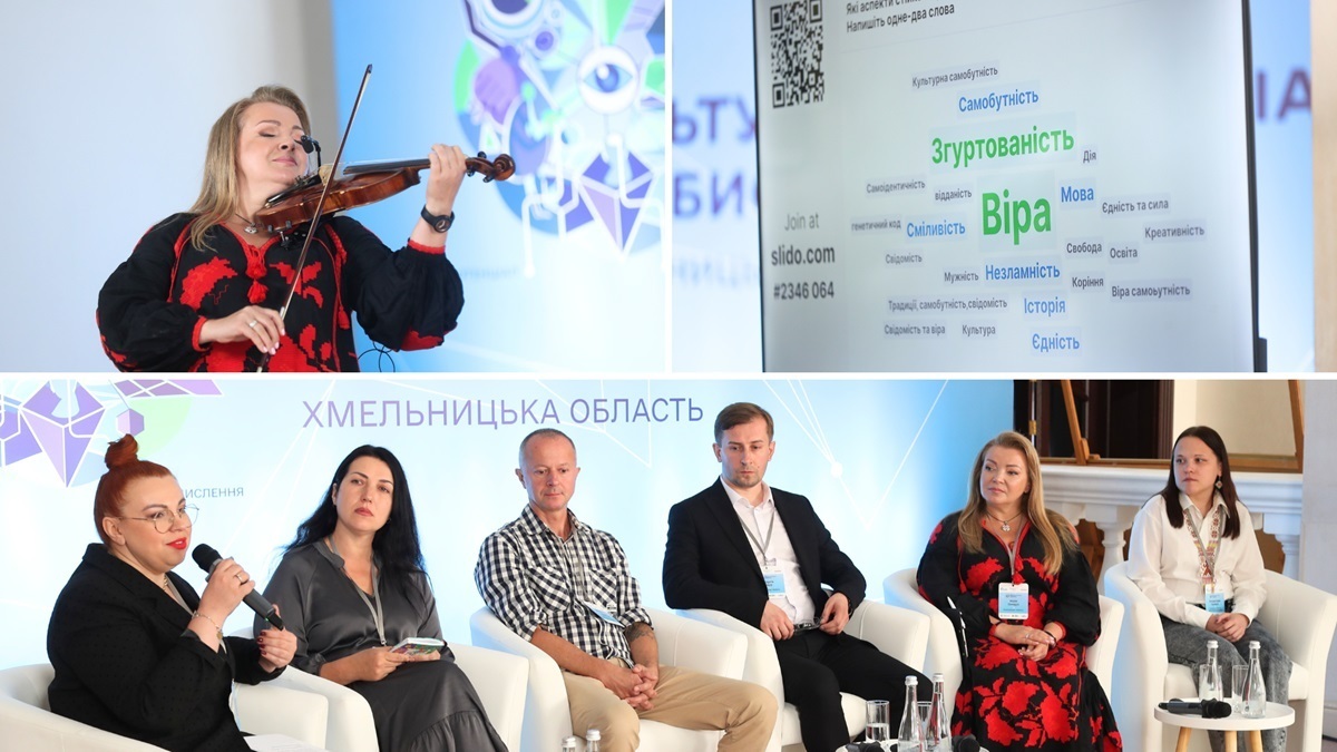 Звичайно ж, Хмельниччина познайомила учасників зі своїми яскравими митцями – скрипалькою Майєю Онищук, Заслуженою артисткою України, та народною дитячо-юнацькою хоровою капелою «Журавлик» (керівник-заслужений працівник культури України Іван Нетечя), які виступили на урочистому відкритті. Струнний квінтет викладачів «Камерата» Кам'янець-Подільської міської дитячої музичної школи імені Ф.Д. Ганіцького вітав учасників перед початком заходу, а картини учнів Кам’янець-Подільського фахового коледжу культури і мистецтв наповнили простір головної зали неповторним культурним духом і створили атмосферу, що налаштовувала учасників на глибокі роздуми та творчі діалоги.