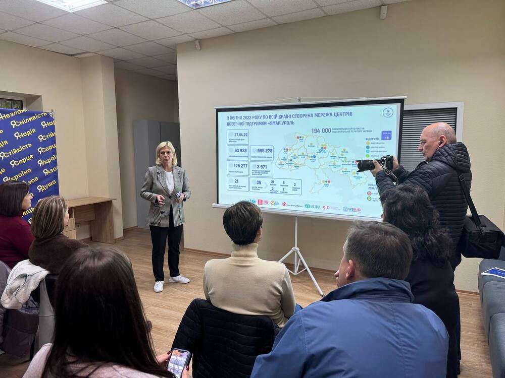 Другим хабом, куди завітала делегація представників громад Донеччини, Херсонщини та Луганщини, став Центр «Я – Маріуполь». Таких центрів по Україні вже створено 35. Хаби працюють за певними напрямками, наприклад, у медичному, соціальному чи є мультифункціональними.