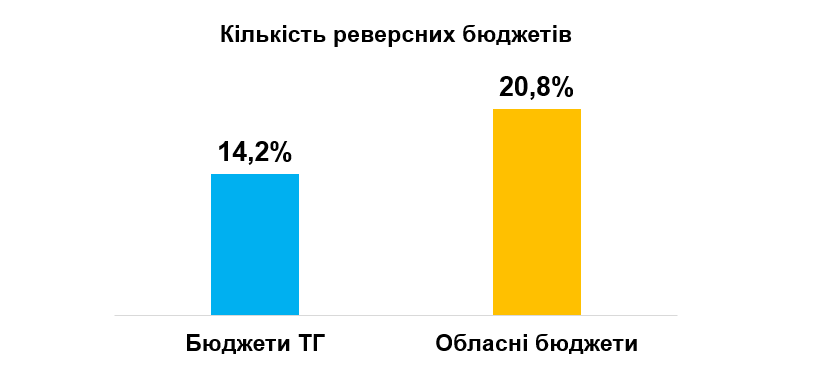 Згідно проведених розрахунків, всього 189 із 1331 (14,2%) бюджету місцевого самоврядування (по яких здійснюється вирівнювання на 2025 рік) є реверсними. 5 із 24 (20,8%) обласних бюджетів є реверсними.