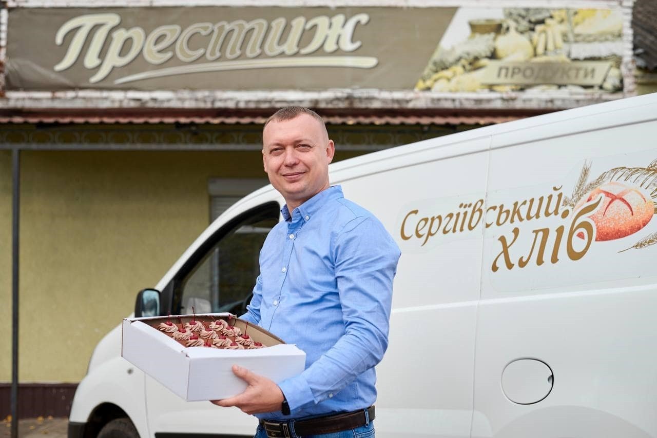 - Їхній власник, Володимир Опришко, відкрив ще й кондитерський цех та мережу крафтових магазинів на Сумщині та Полтавщині. Завдяки йому, посередники, які раніше купували у людей молоко за безцінь, були вимушені підняти закупівельну ціну, бо люди почали переходити від них до Володимира. Свої компанії Опришко об’єднав під брендом «Сергіївський продукт». Наші проєктні менеджери допомогли йому оформити грантові заявки, і Володимир отримав від USАID AGRO кілька мільйонів гривень на обладнання для свого бізнесу. Також з нашою допомогою Володимир придбав для пекарні потужний генератор, бо ви ж самі знаєте, які тепер перебої з електропостачанням, а люди у жодному разі не повинні залишитися без хліба. Нині Володимир Опришко встановлює на своїх об’єктах сонячні батареї, щоб бути незалежним від електроенергії з мережі. Так що можна сказати, що його кейс – зразковий.