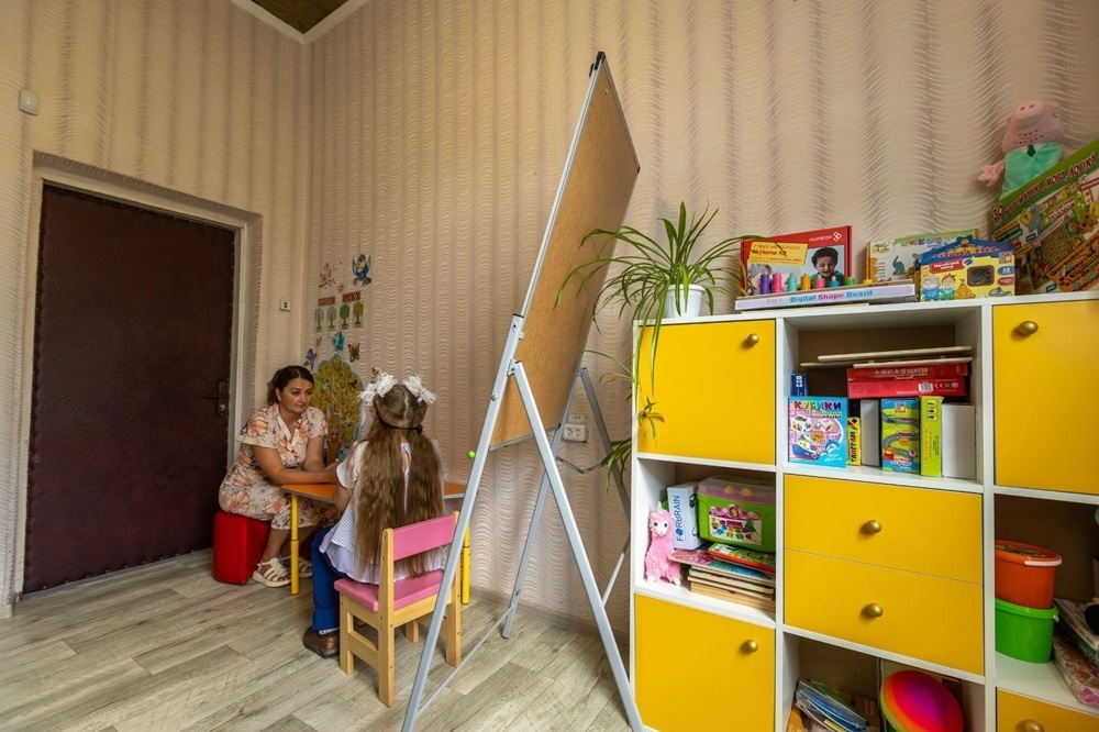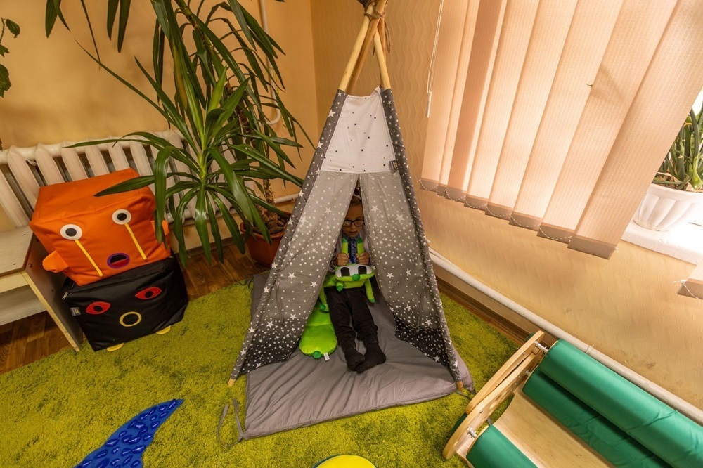 «Дітям дуже подобається дитяча іграшкова кухня зі світлом та музикою, яка в ресурсній кімнаті. Коли вони очікують на заняття, то «готують» обіди. Плита вмикається, сковорідка шумить, наче справжня. Діти в ігровій формі закріплюють потрібні соціально-побутові навички. А ще в нас з’явилася інтерактивна дошка, проєктор, ноутбук, фліпчарт, багато дидактичних матеріалів», – розповідає Лідія Антонова.