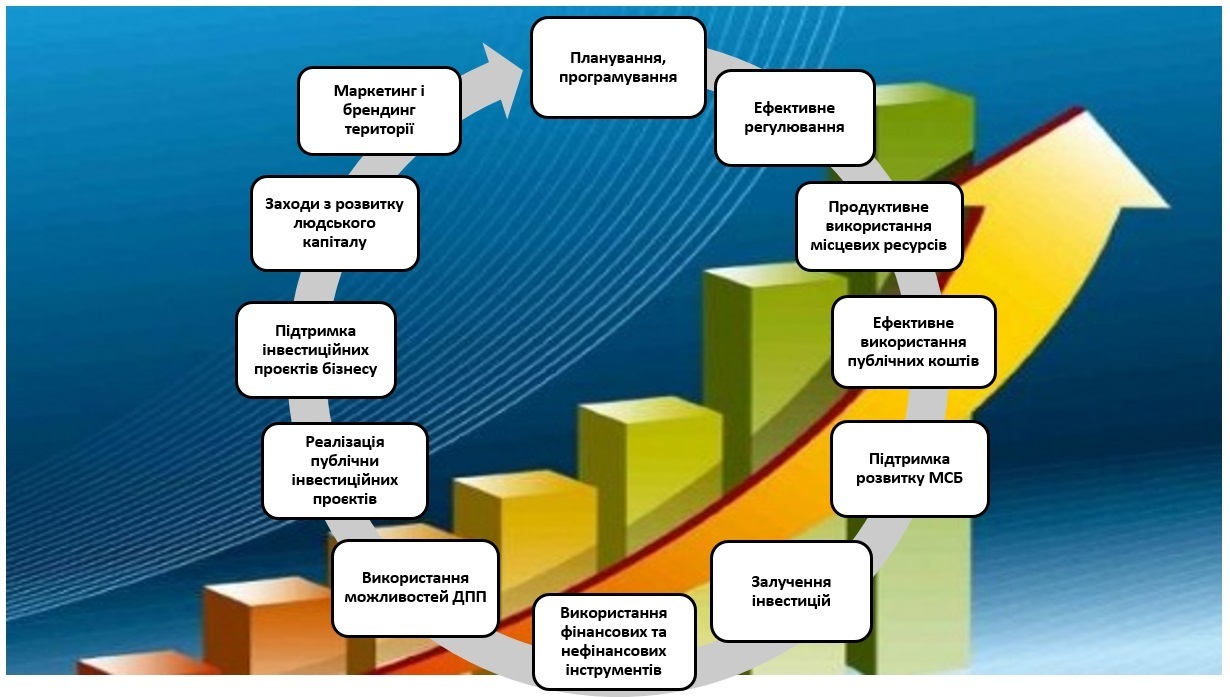 Ефективність МЕР значною мірою залежить від професійної компетентності посадових осіб місцевого самоврядування, спроможності здійснювати ефективне управління економічним розвитком громади. Таке управління забезпечується шляхом використання певного інструментарію, зокрема: