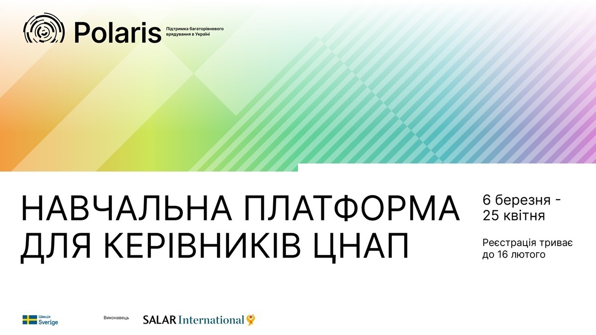 Шведсько-українська програма Polaris «Підтримка багаторівневого врядування в Україні» запрошує на навчання керівниць та керівників ЦНАП, які прагнуть розвивати свої професійні компетенції.