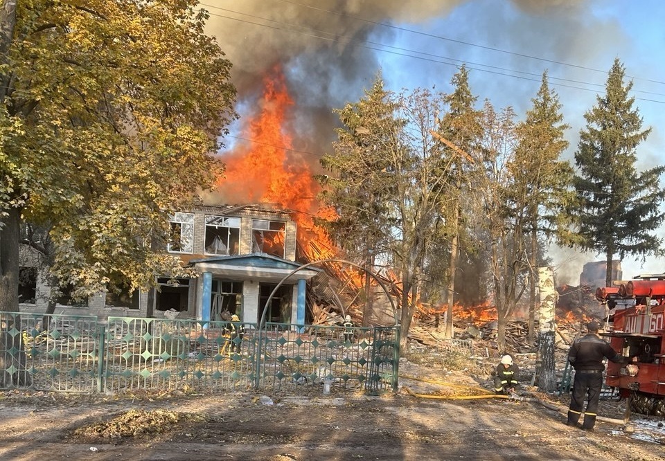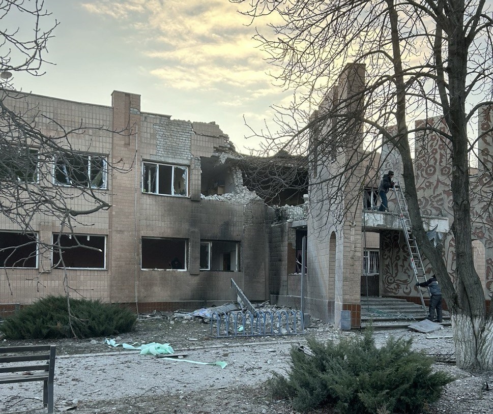 Борівська селищна рада, зруйнована російськими ракетами. У центрі – пролом, на місці якого був колись кабінет Олександра Тертишного