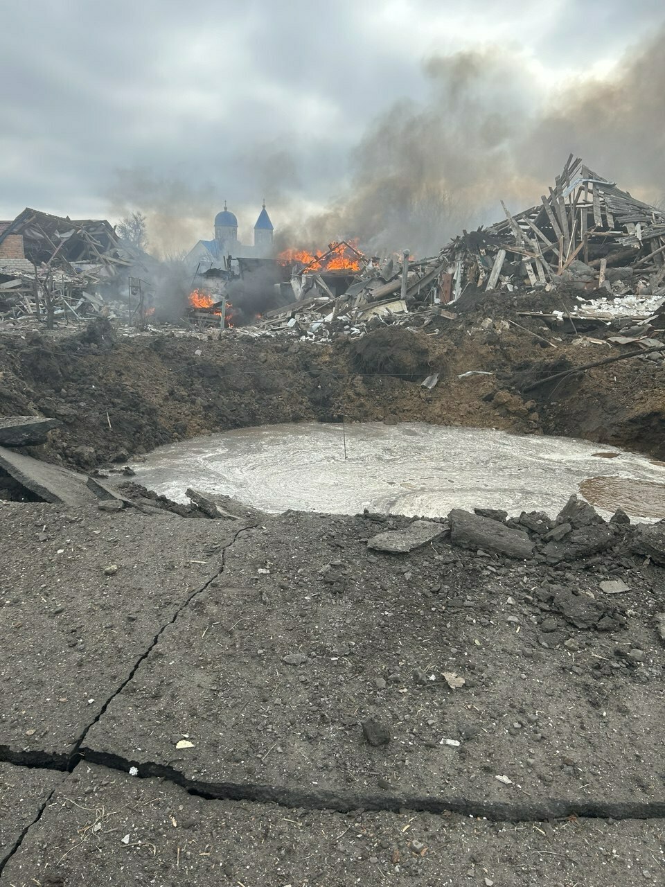 Наслідок удару керованою авіаційною бомбою по приватному сектору селища Борова