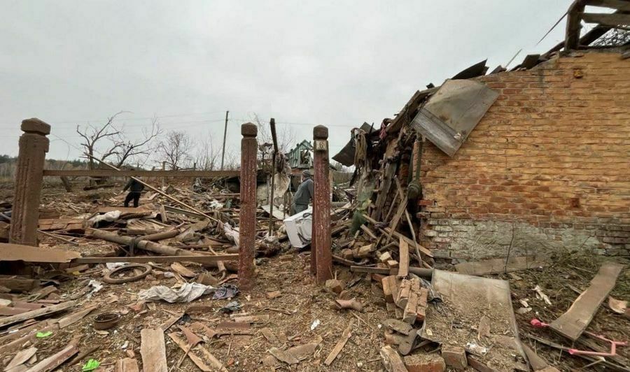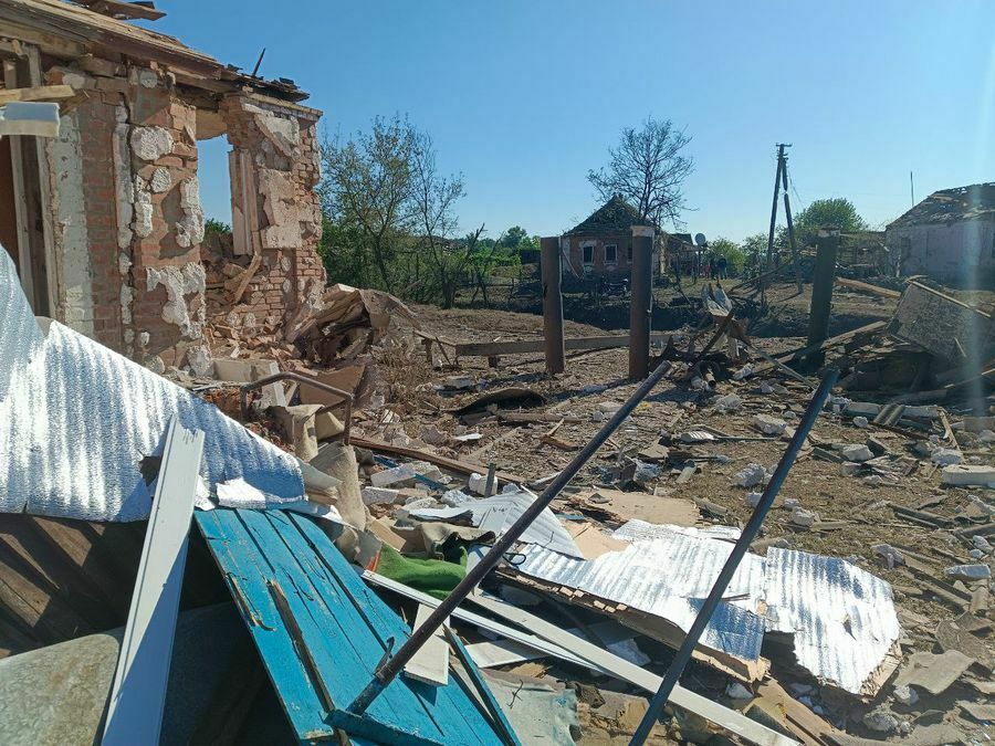 Наслідок удару по приватному житловому сектору Краснопільської громади російською керованою авіаційною бомбою