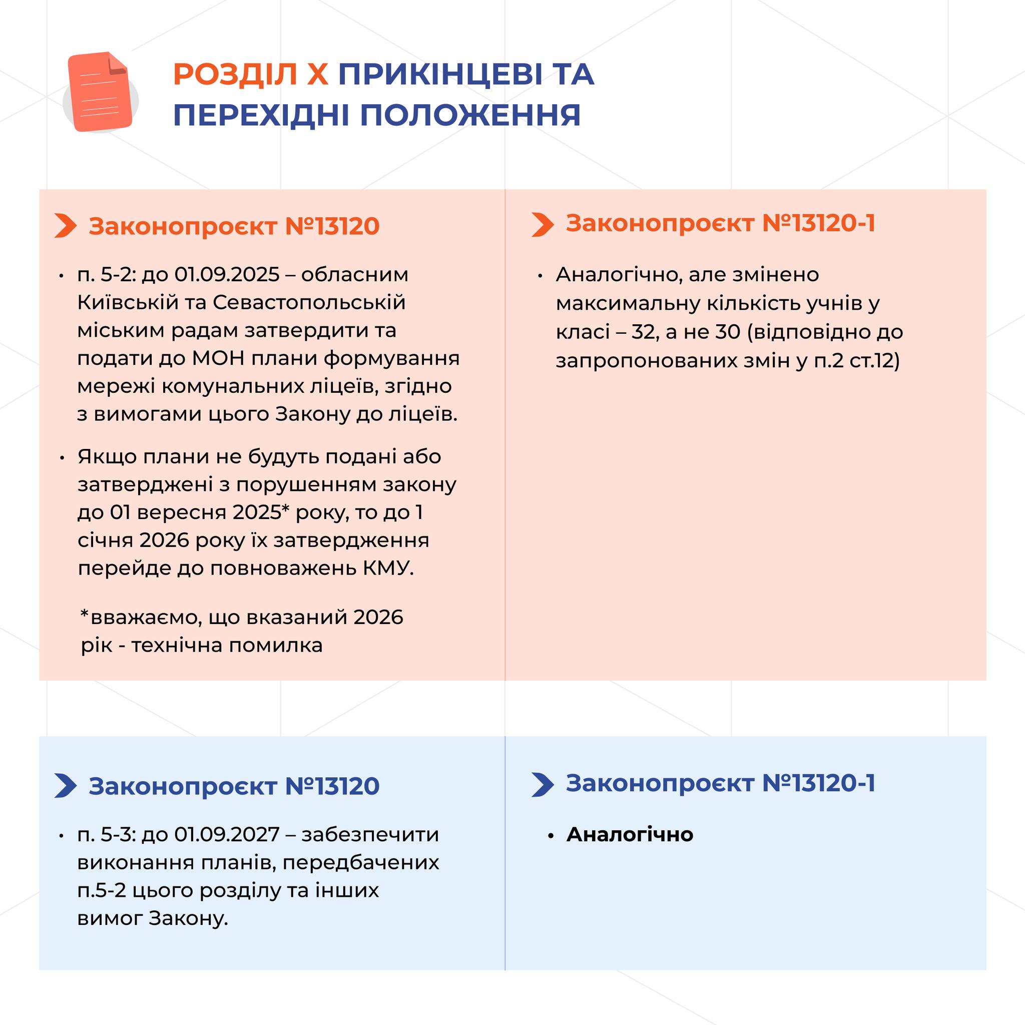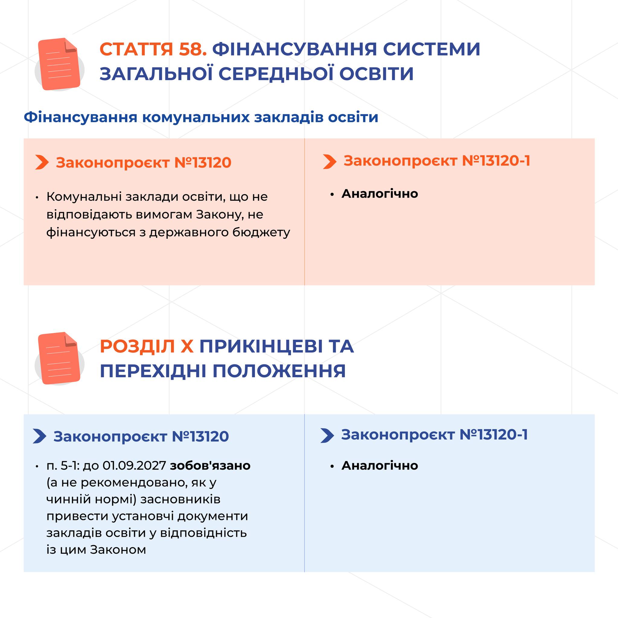 У чому відмінність законопроєктів №13120 та №13120-1, спрямованих на трансформацію мережі закладів освіти