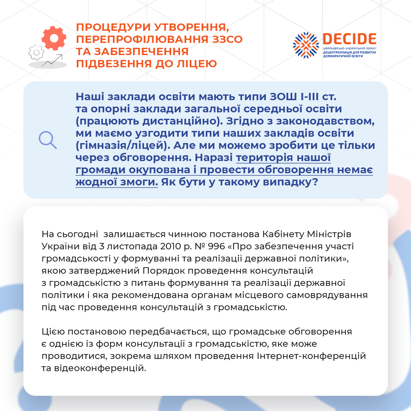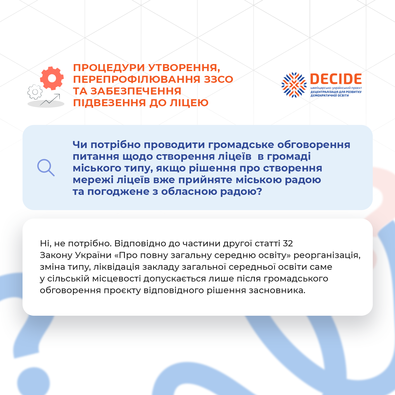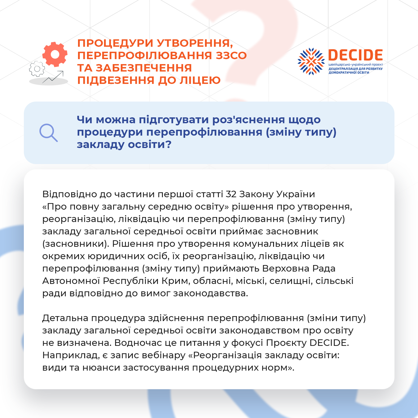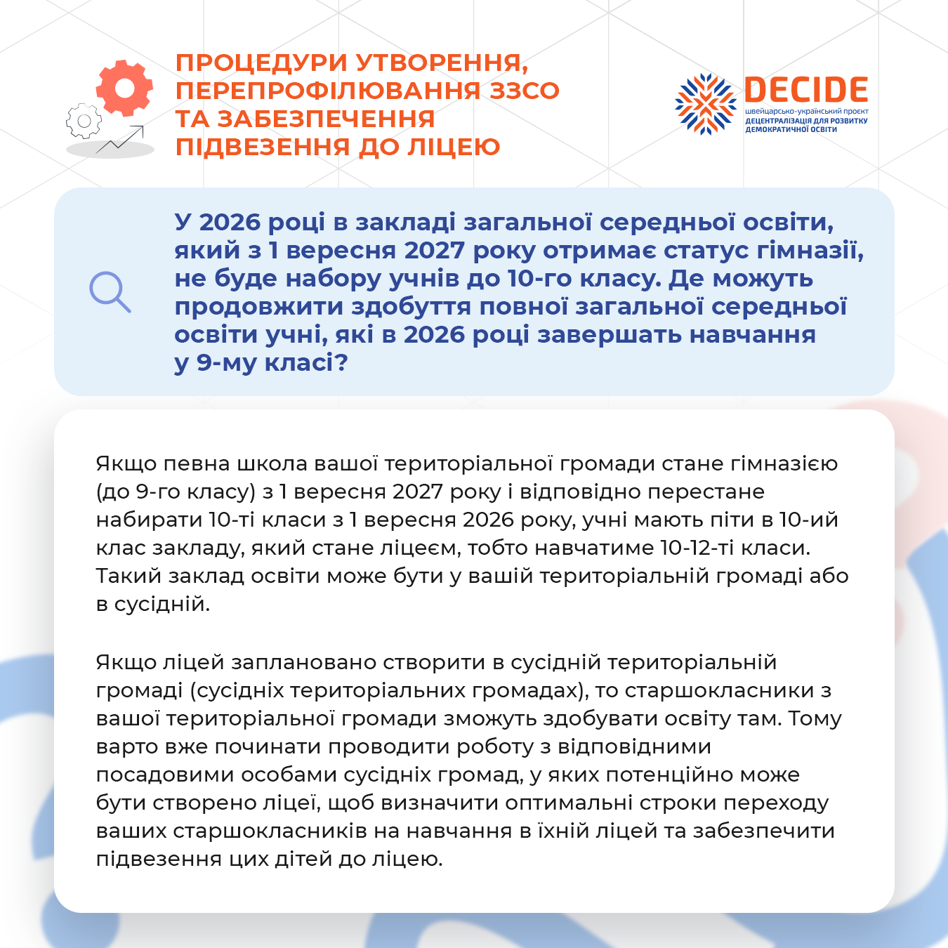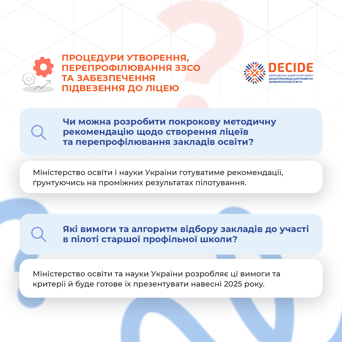 Експерти Швейцарсько-українського проєкту DECIDE відповіли на поширені запитання про реформу старшої профільної школи.