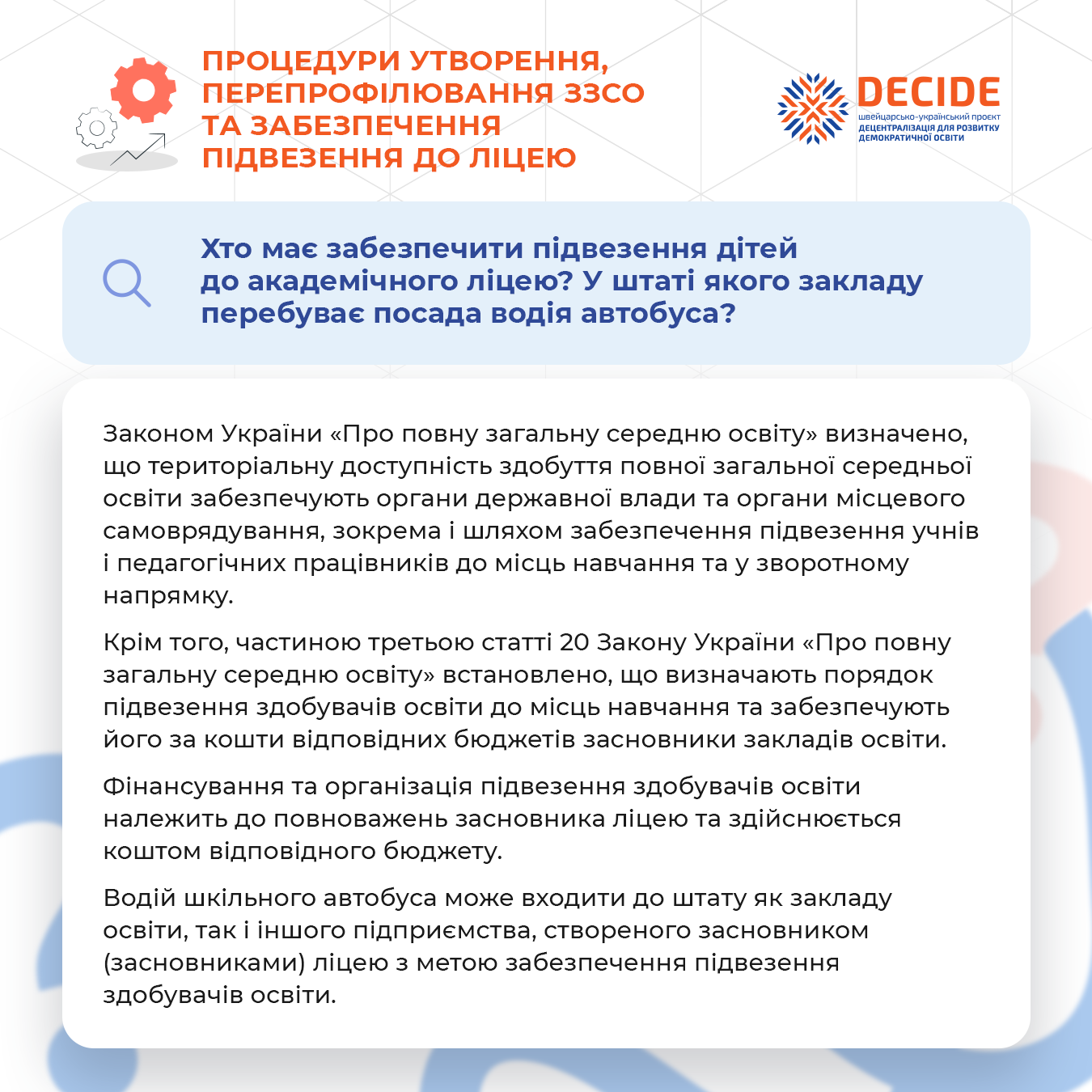 • Хто забезпечуватиме підвезення дітей до академічного ліцею?
