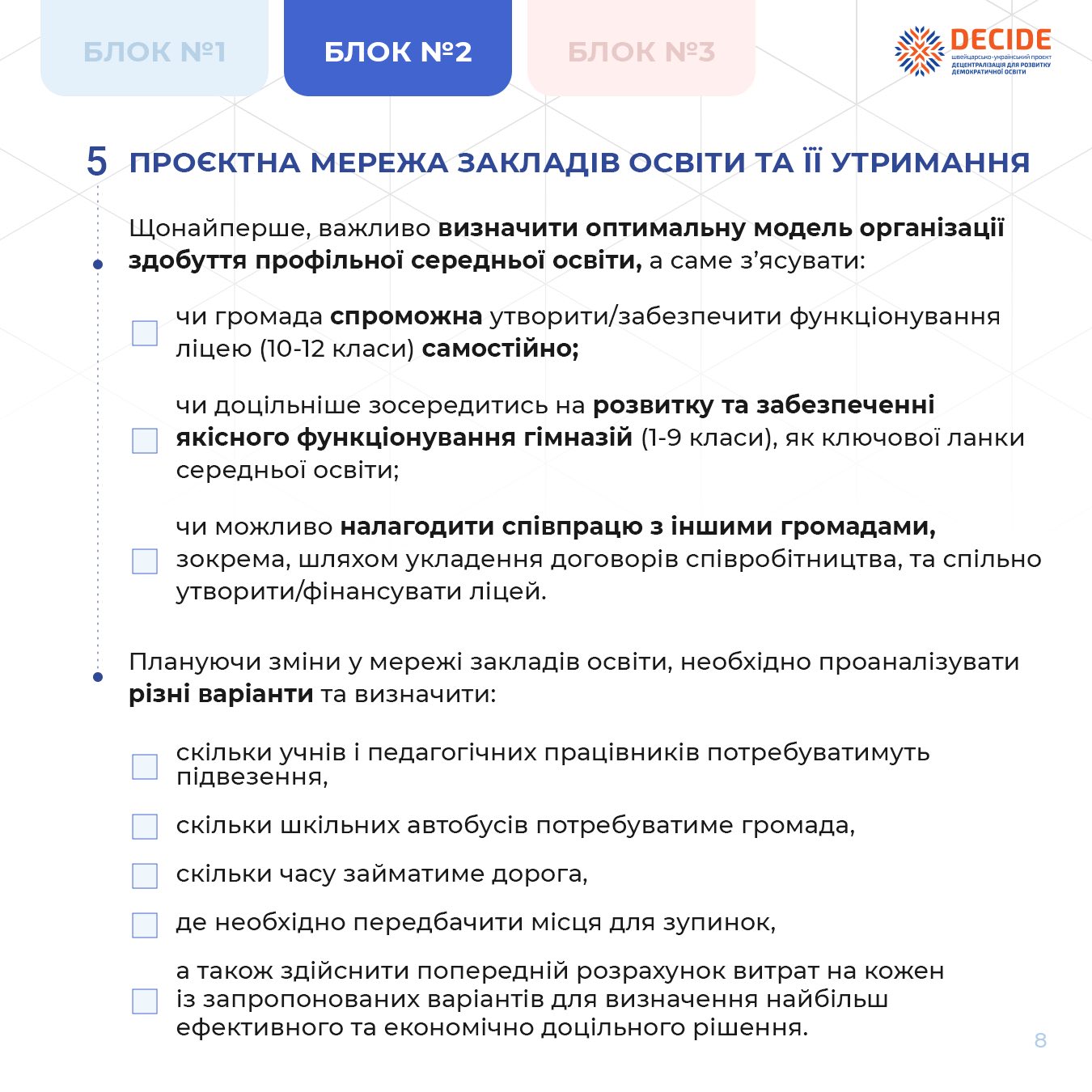 • Що варто врахувати при формуванні мережі закладів освіти в громаді?