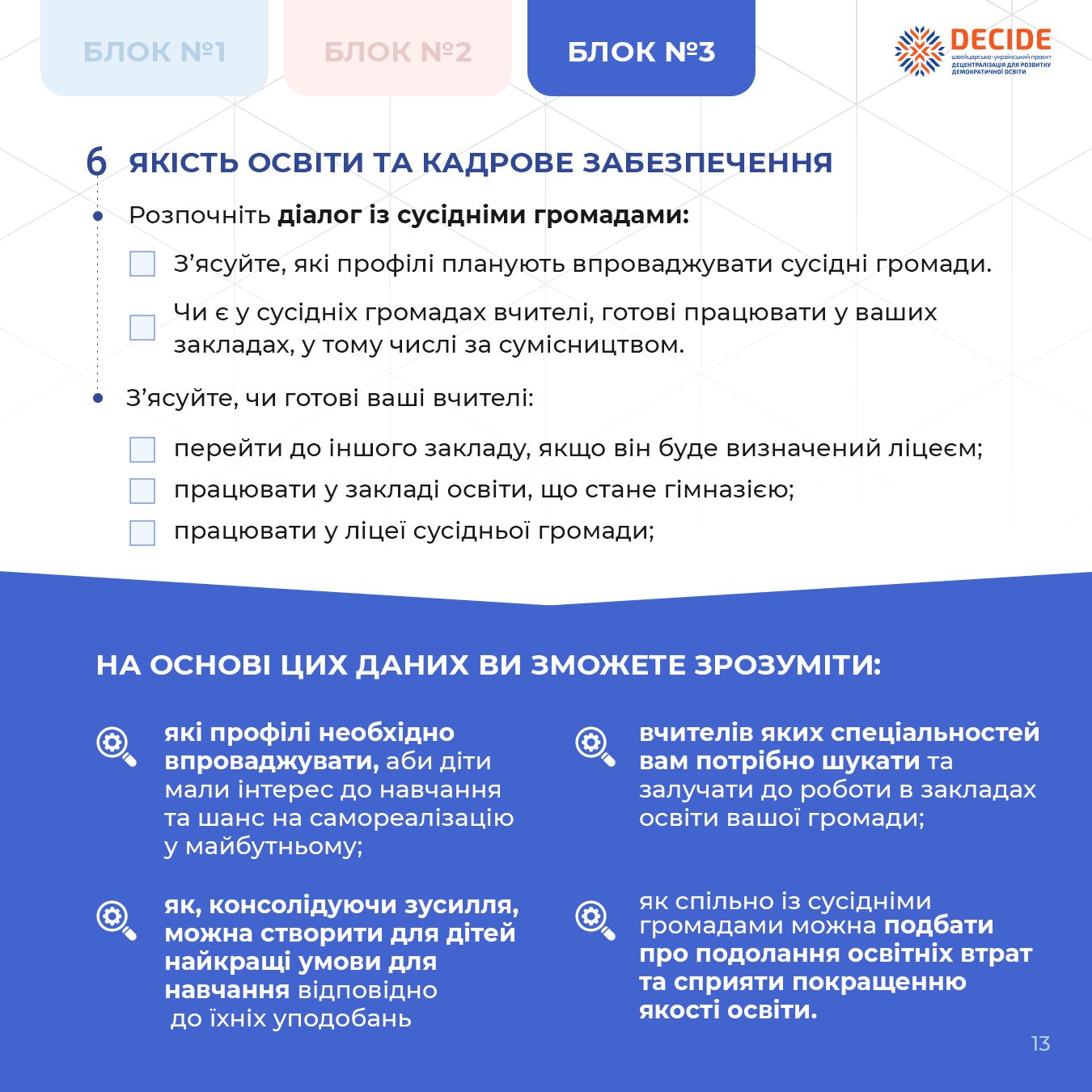 • Як, консолідуючи зусилля, створити для учнів і учениць найкращі умови для навчання?