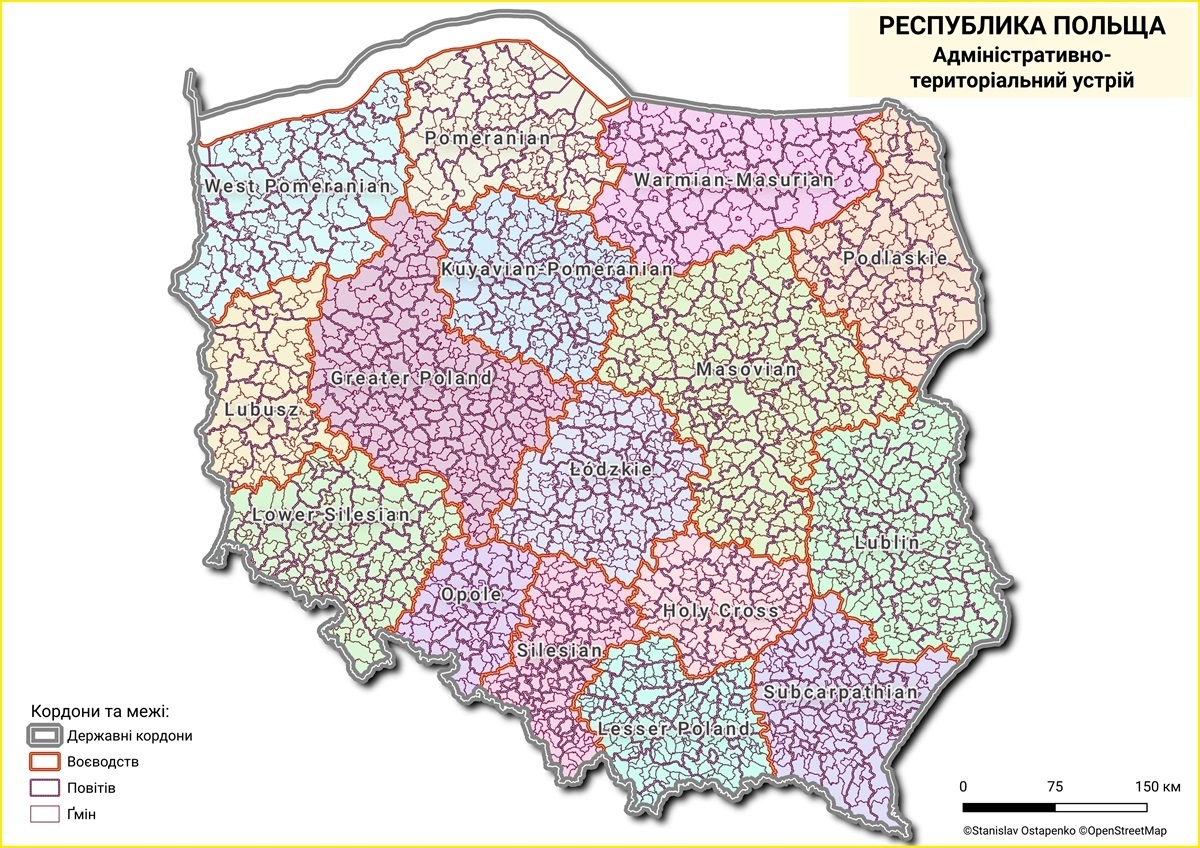 Для прикладу, розглянемо нашого найближчого європейського сусіда Республіку Польща, з якою маємо багато спільного в адміністративно-територіальному устрої. У результаті адміністративної реформи у 1999 році Польща була розділена на 16 воєводств (можемо проводити аналогію із нашими областями) адміністративно-територіальна одиниця найвищого рівня, де впроваджується регіональна політика. Воєводства, у свою чергу, поділяються на 308 повітів, у тому числі 65 міських - міста на правах повіту з понад 100 тис мешканців (тут, вочевидь, не можемо провести пряму паралель з Україною, але вважатимемо, це районами та містами обласного значення). Повіти складаються з 2489 ґмін (громад). Говорячи про співпрацю та «затягування» фінансування з фондів ЄС - воно відбувається на кожному з рівнів адміністративних одиниць, в залежності від проєкту та обсягу фінансування. І відбувається досить успішно, про що свідчить обсяг фінансування. Мовою цифр - на 7-ми річний програмний період із 2021 до 2027 для Польщі виділено 76,5 млрд € на реалізацію 7-ми національних програм та 16-ти регіональних. Мабуть, ця класична регіональна модель найближча Україні по своїй формі.