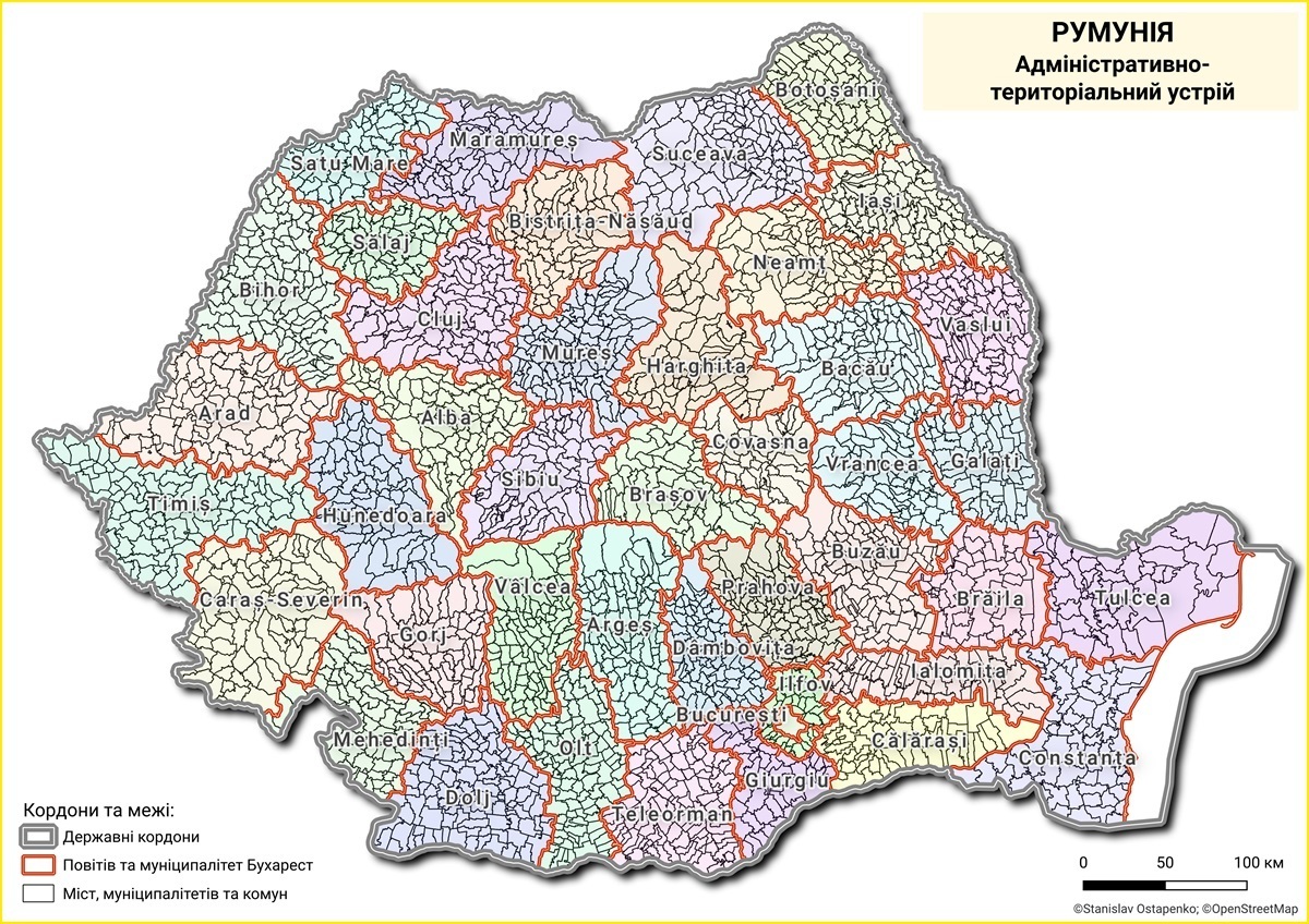 Наостанок, про Румунію, успіхи проведення реформи якої - ставимо під сумнів, оскільки реального процесу укрупнення, де-факто, не відбулось. На відміну від України, якій вдалося пропорційно побудувати три рівні адміністративно-територіальних одиниць у 2020 році, розриви між рівнями управління в Румунії є шаленими. Згідно з Конституцією Румунії, адміністративно країна поділена на 41 повіт та один національний муніципалітет - Бухарест. Загалом у Румунії існує 3141 адміністративно територіальна одиниця базового рівня (міста, муніципалітети та комуни). Окрім цього, країна поділена на 8 регіонів розвитку, що не є безпосередніми адміністративними одиницями, а створені для координації та управління регіональним розвитком – рівень NUTS 3.