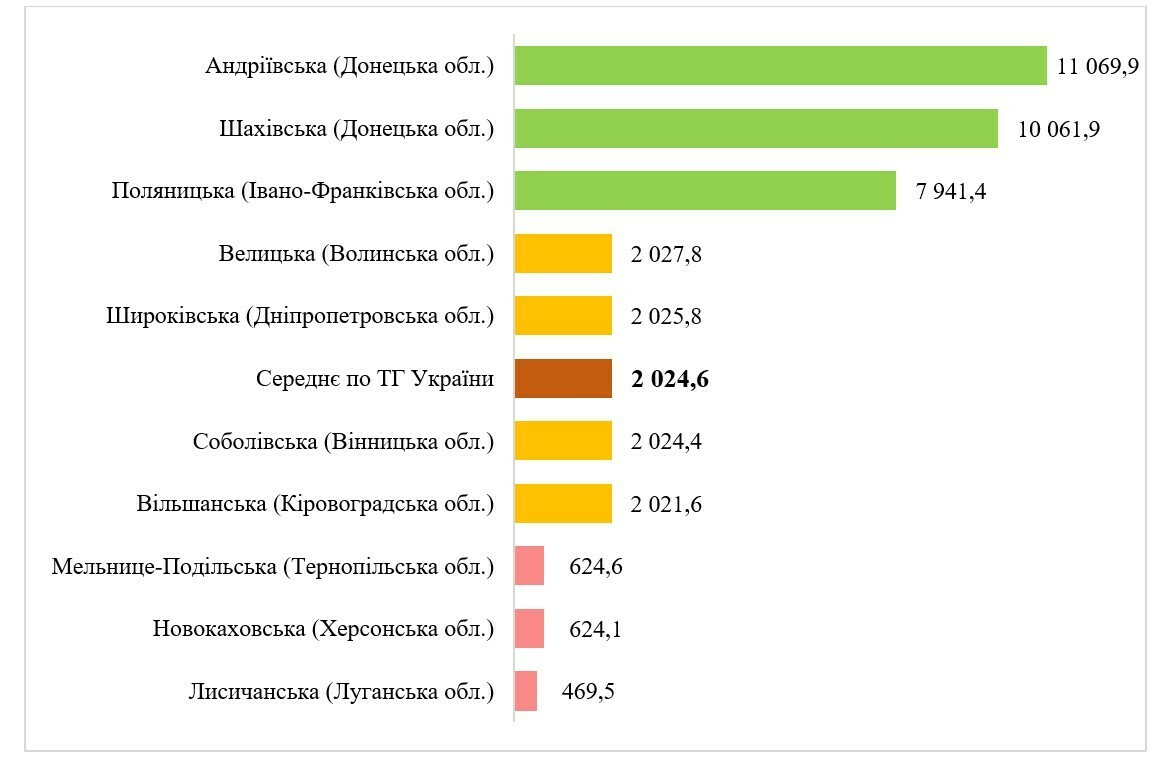 Середній обсяг видатків на утримання апарату управління на 1 мешканця склав 2024,6 грн/1 особу (у 517 громадах перевищено дану величину), капітальні видатки на 1 мешканця в середньому по громадах склали 2075,8 грн/1 особу (у 381 громаді перевищено дану величину).