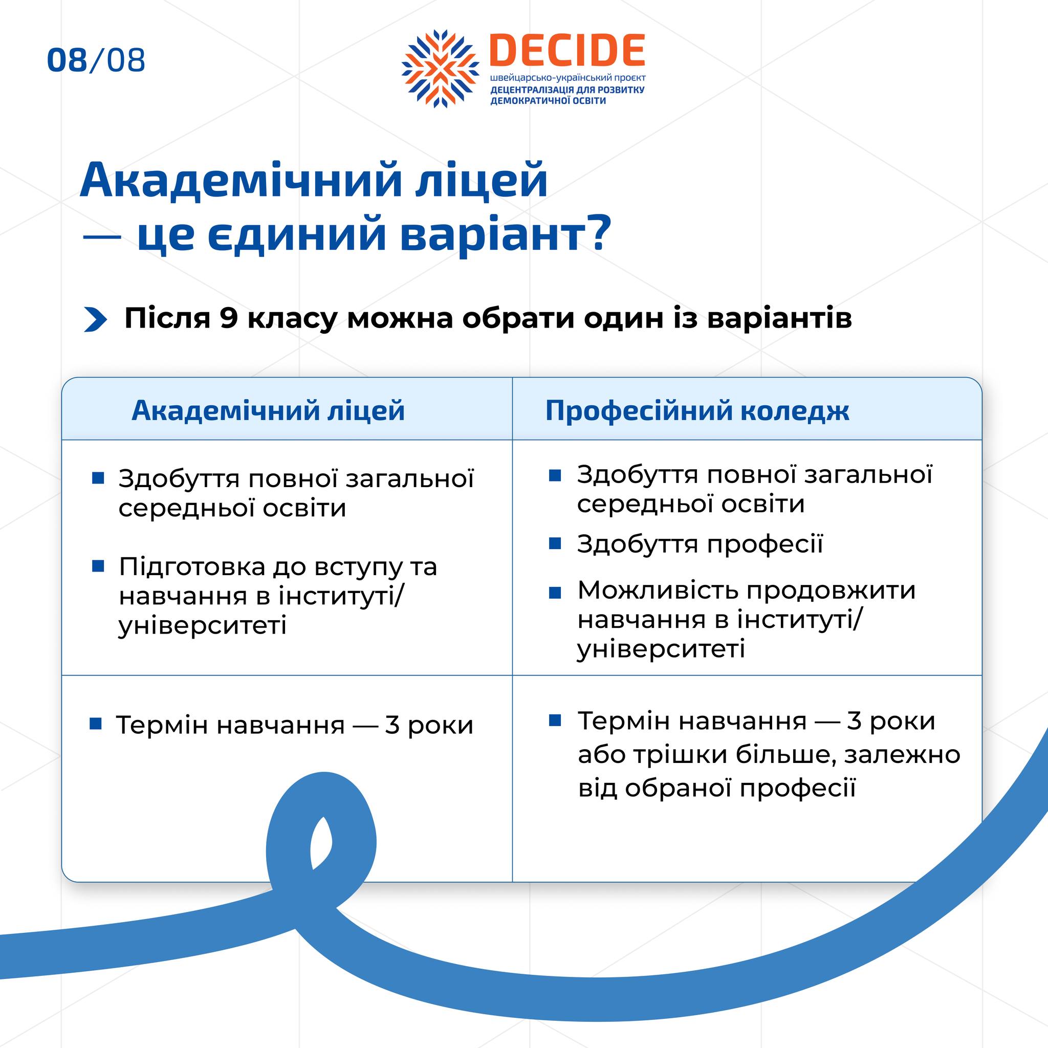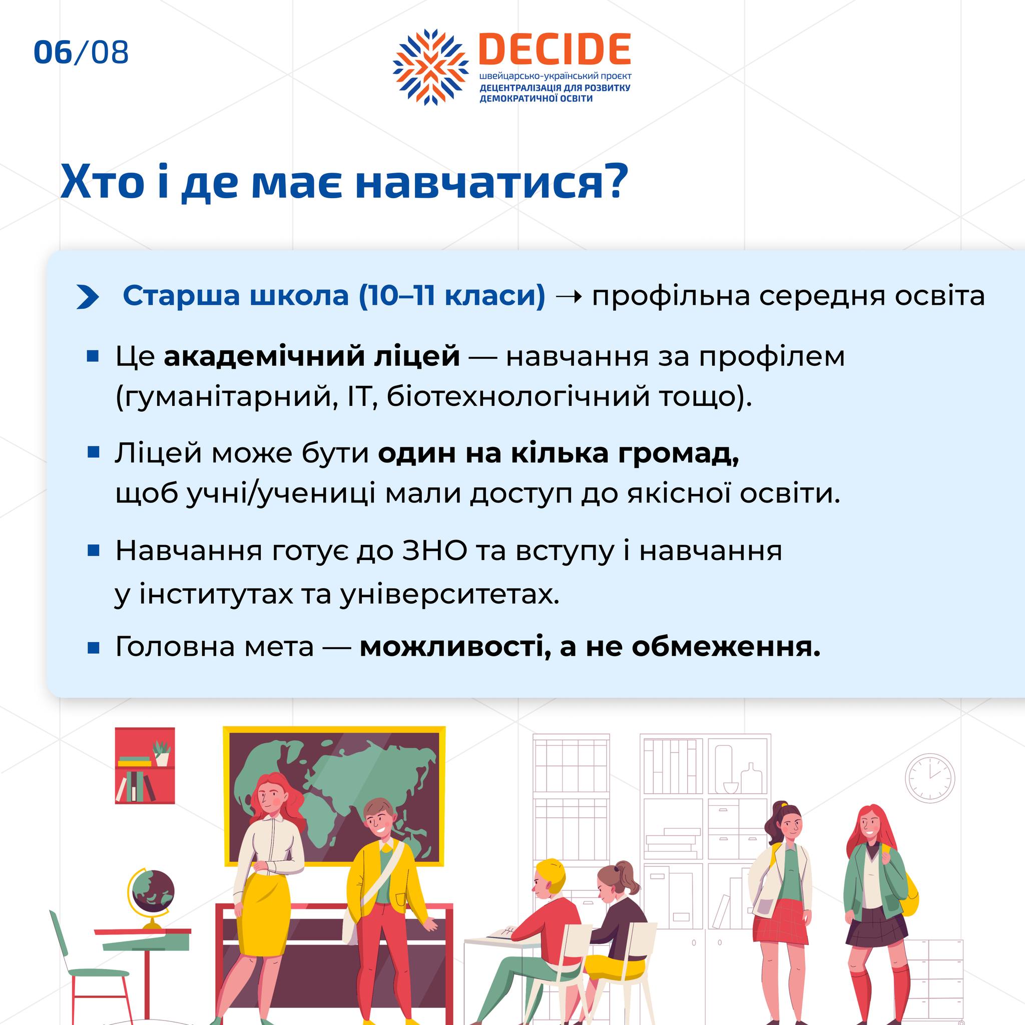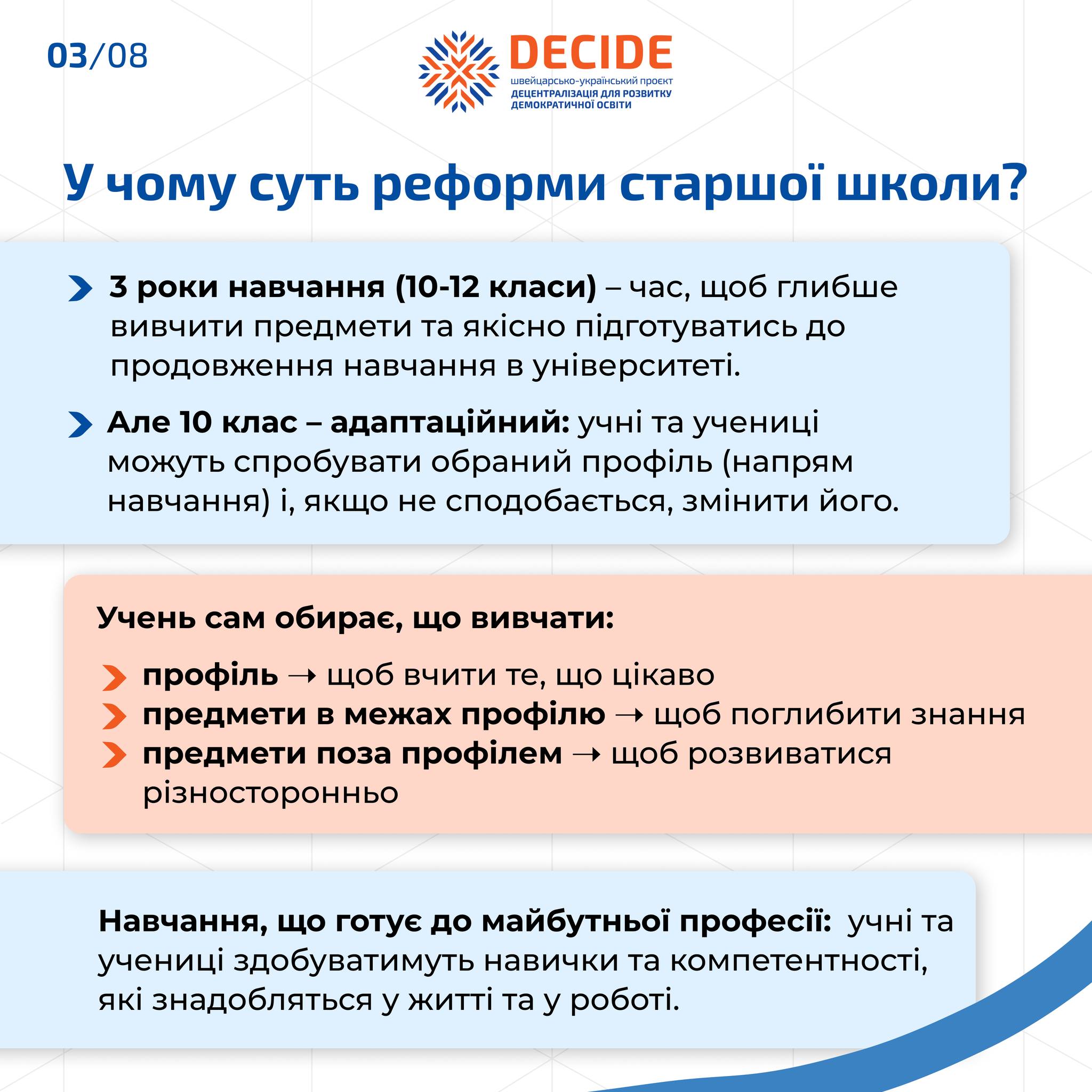 Експерти Швейцарсько-українського проєкту DECIDE продовжують відповідати на поширені запитання про реформу старшої профільної школи.