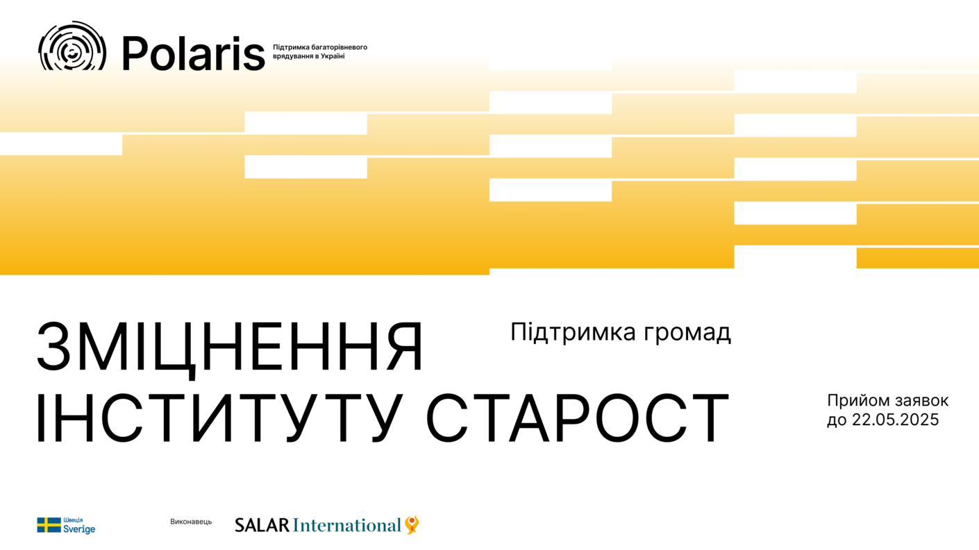 Шведсько-українська Програма Polaris «Підтримка багаторівневого врядування в Україні» оголошує новий відбір громад-партнерок для спільної роботи над розвитком інституційної спроможності інституту старост. Особлива увага цього циклу – на контексті функціонування громад в умовах правового режиму воєнного стану.