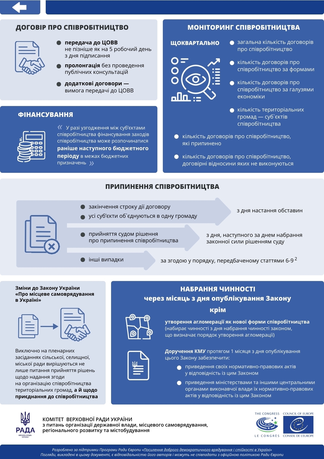Окрім того, форми співпраці територіальних громад трансформуються, виникає потреба більш ретельного урегулювання різних етапів реалізації проектів співробітництва.