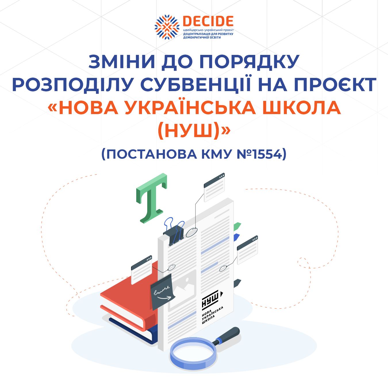 Експерти Швейцарсько-українського проєкту DECIDE підготували інфографіку про оновлені правила використання коштів субвенції на «Нову українську школу», визначені Постановою Уряду №1554 від 31 грудня 2024 року щодо субвенції на реалізацію інвестиційного проєкту «Нова українська школа» у 2025 році.