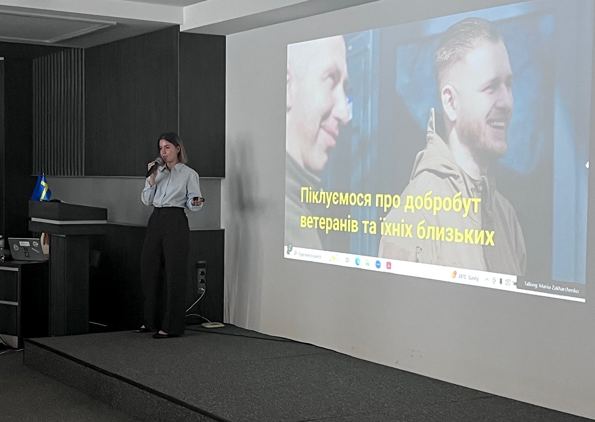 Особливої уваги учасників набув виступ Єлизавети Канєвської, менеджерки Veteran Hub та проєктів державної політики й карʼєрного консультування, яка розповіла про якісну ветеранську інфраструктуру, представила кращі інструменти та практики, а також презентувала успішні кейси про роботу мобільних офісів, наповнення ветеранських просторів якісними послугами, наприклад, таких практик, як працевлаштування ветеранів і «рівний – рівному», та навела критерії ефективності таких ініціатив. Окремо експертка представила базовий проєкт “Шлях ветерана”, результати якого стали відправною точкою багатьох подальших аналітичних проєктів та ініціатив організації.