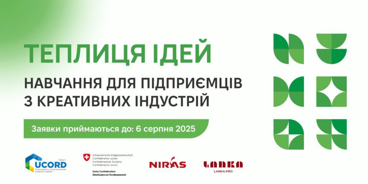 У рамках програми «Теплиця ідей» підприємці з культурних та креативних індустрій отримають доступ до навчання, а також грантову підтримку та менторський супровід. За додатковою інформацією про проєкт UCORD та програму «Теплиця ідей» звертайтесь до комунікаційної менеджерки проєкту UCORD Антоніни Домікан, antonina.domikan@niras.se.